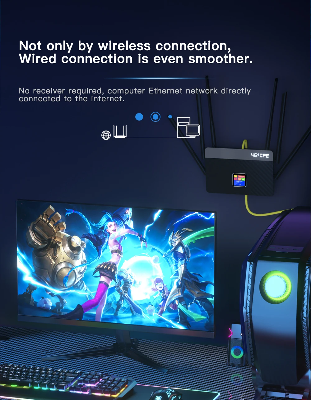 El enrutador 4G CPE tiene una batería de litio incorporada de alta capacidad de 5200 mAh.Puede activar el acceso del enrutador a Internet en cualquier momento y en cualquier lugar. Para asegurarse de poder usarlo durante mucho tiempo cuando salga.