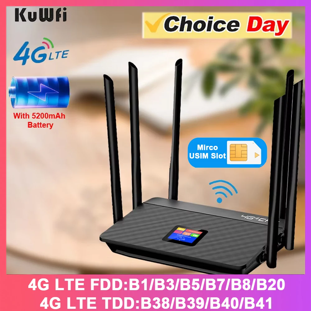 Comprar KuWFi 5200mAh CAT4 4G LTE Router 2,4G 300Mbps enrutador inalámbrico Wi-Fi 6 uds antenas externas con ranura para tarjeta SIM RJ45 puerto WAN/LAN