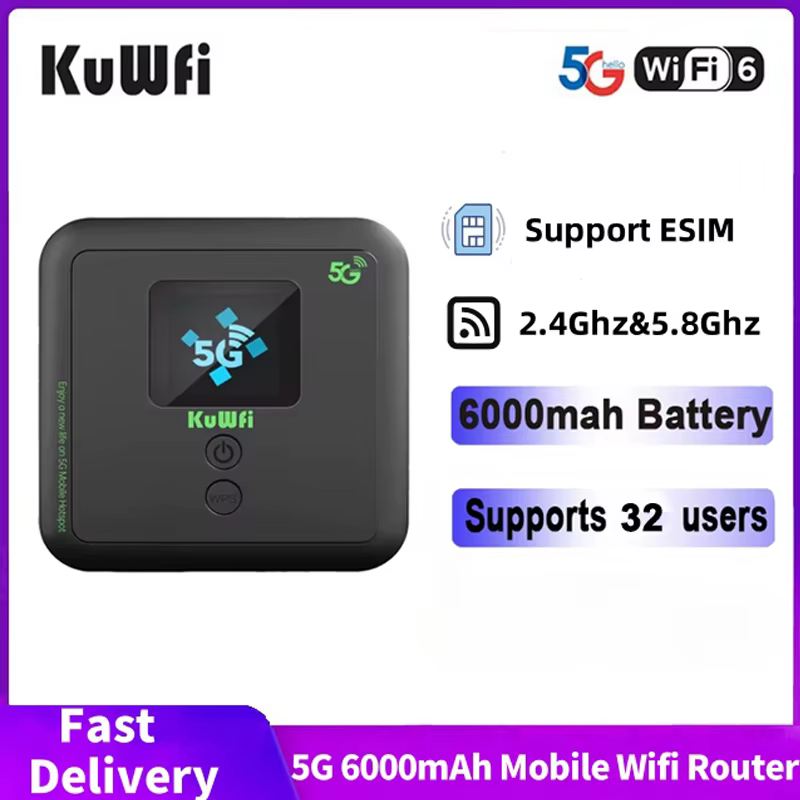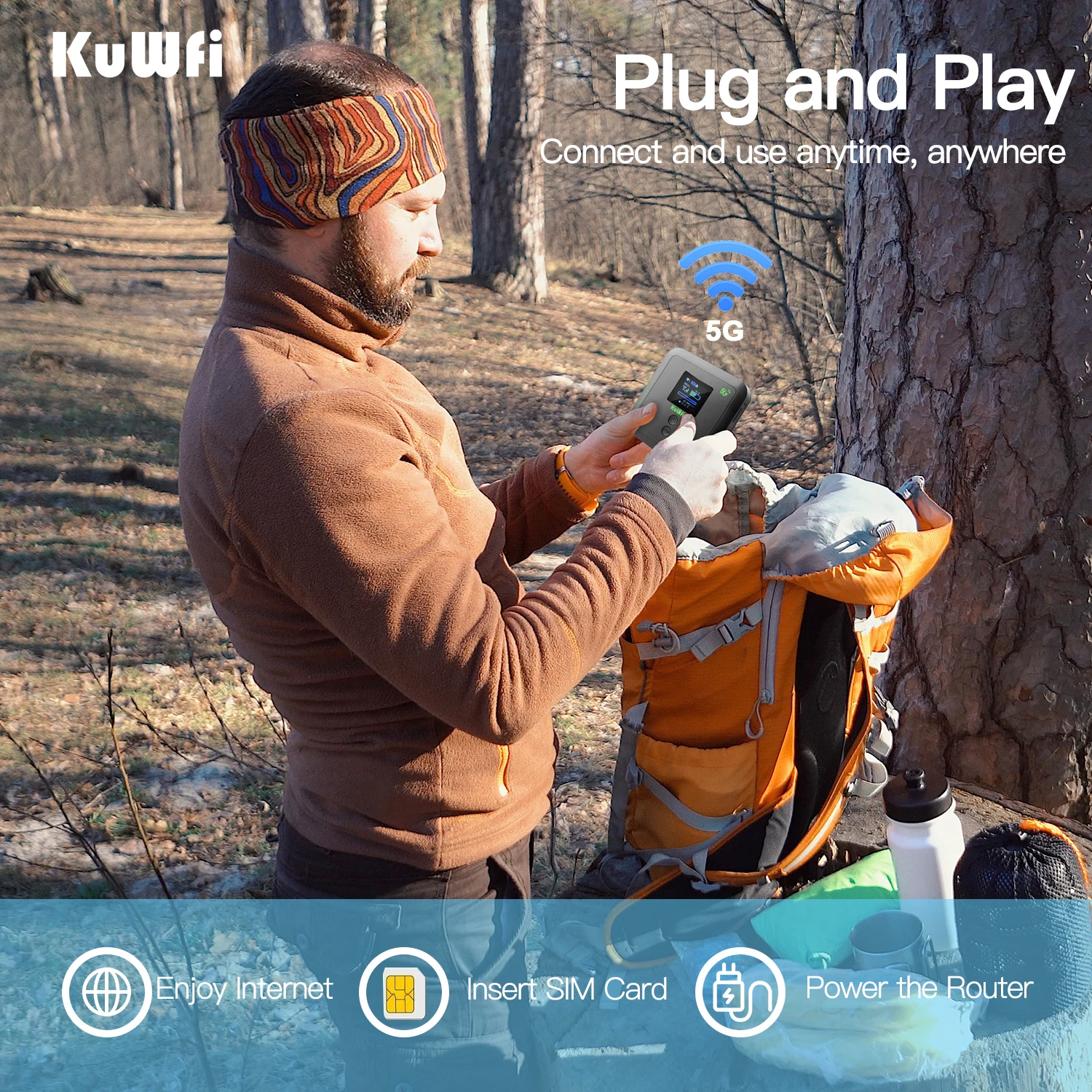 Comprar KuWFi 5G Wi-Fi6 AX3000 enrutador WiFi enrutador inalámbrico de doble banda Mini punto de acceso móvil portátil 4G enrutador de viaje eSIM batería de 6000mAh