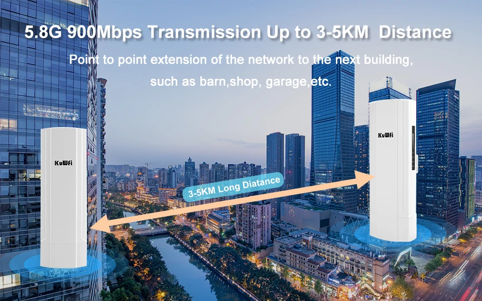 Comprar KuWFi 900Mbps enrutador WIFI para exteriores puente 5,8G repetidor inalámbrico amplificador punto a punto Wifi transmisión de larga distancia 3-5KM