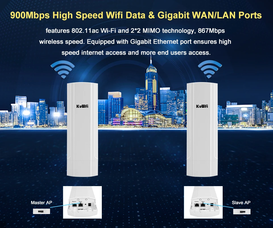 Comprar KuWFi 900Mbps enrutador WIFI para exteriores puente 5,8G repetidor inalámbrico amplificador punto a punto Wifi transmisión de larga distancia 3-5KM