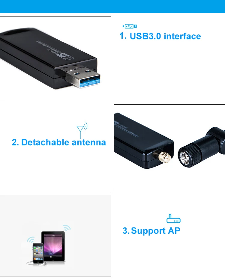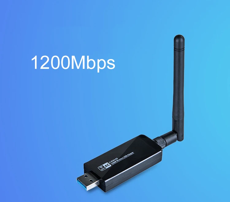 Comprar KuWFi-adaptador WIFI inalámbrico de 1200Mbps, tarjeta de red con antena, doble banda, USB 3,0, 2,4 GHz, 5GHz