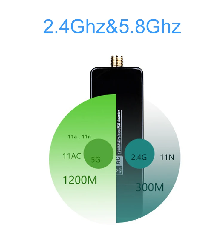 Rango de frecuencia: 2,4G: 2,4000 Ghz-2,4835 Ghz 5,8G: 5,15 Ghz-5.825Ghz