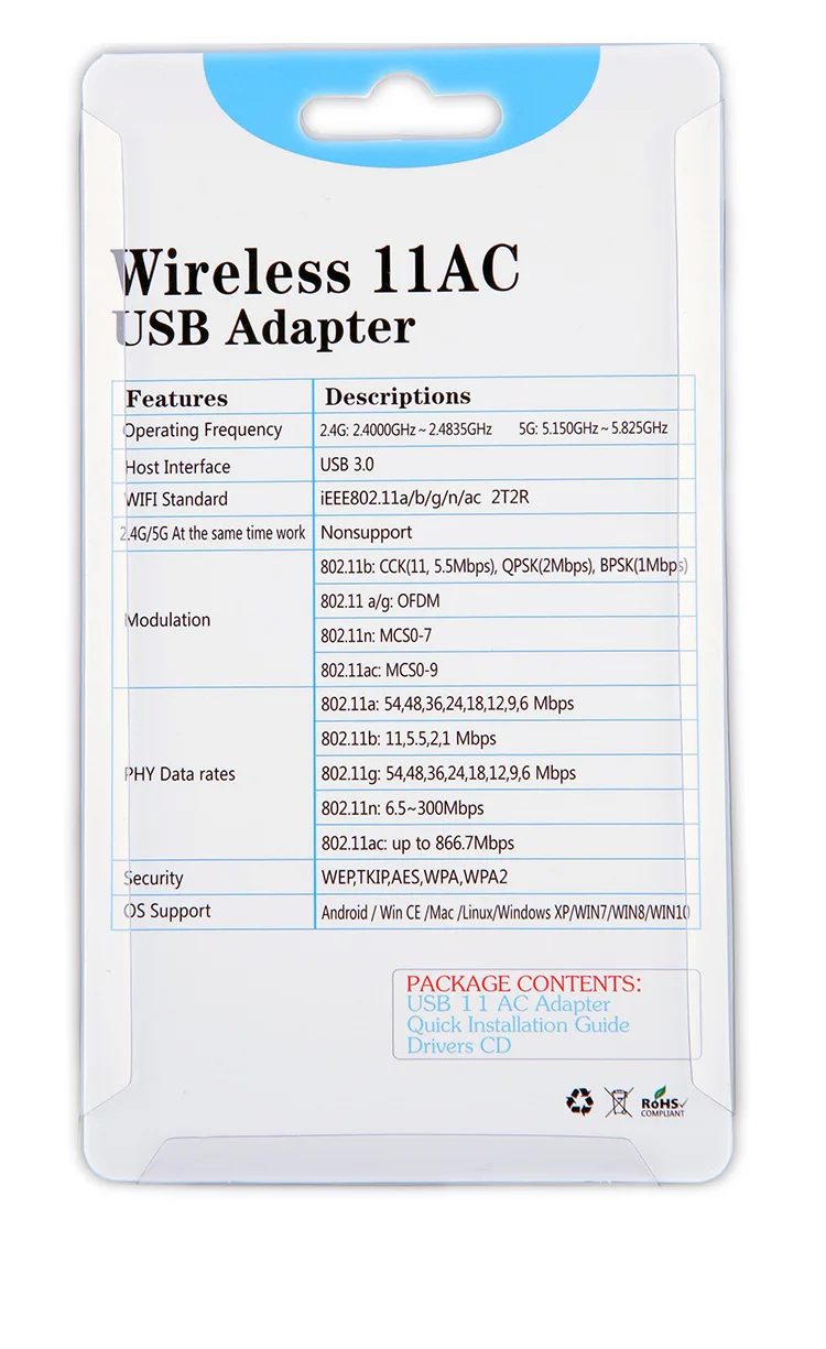 WiFi estándar: IEEE80211a/b/g/n/ac/2T2R