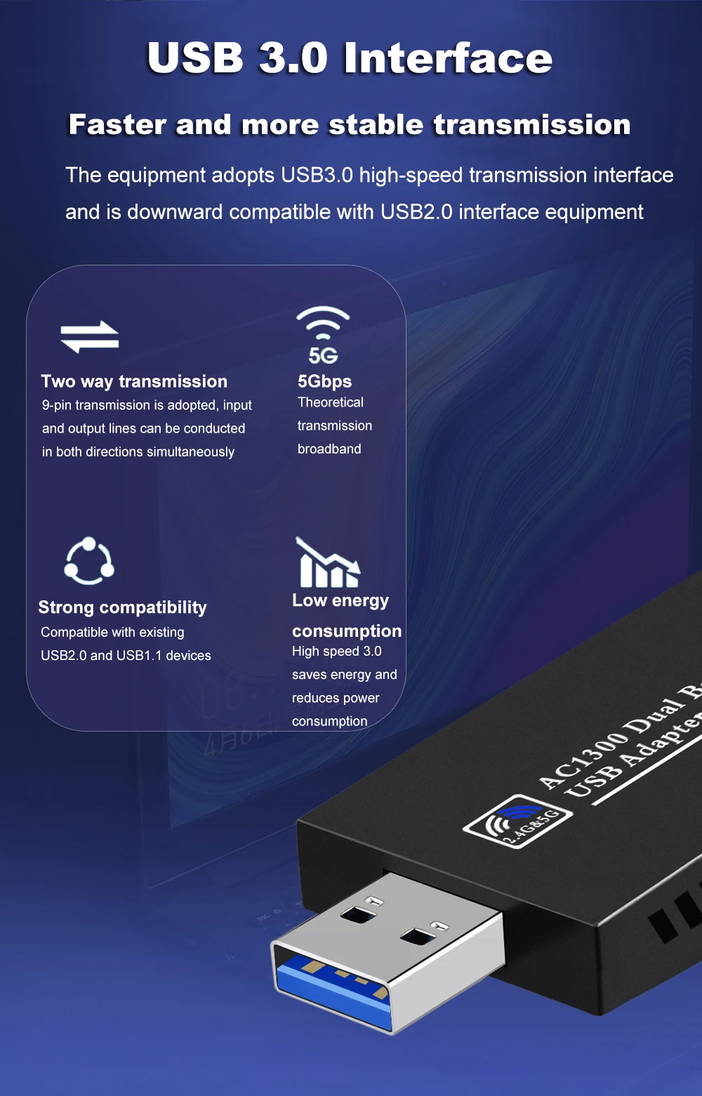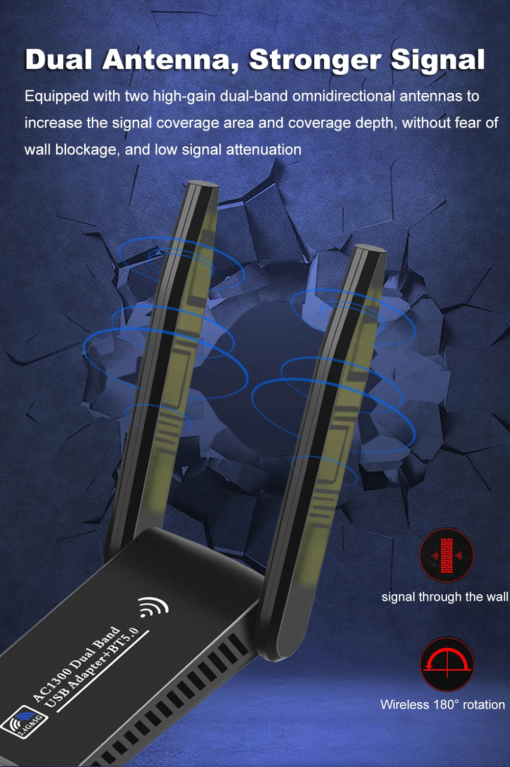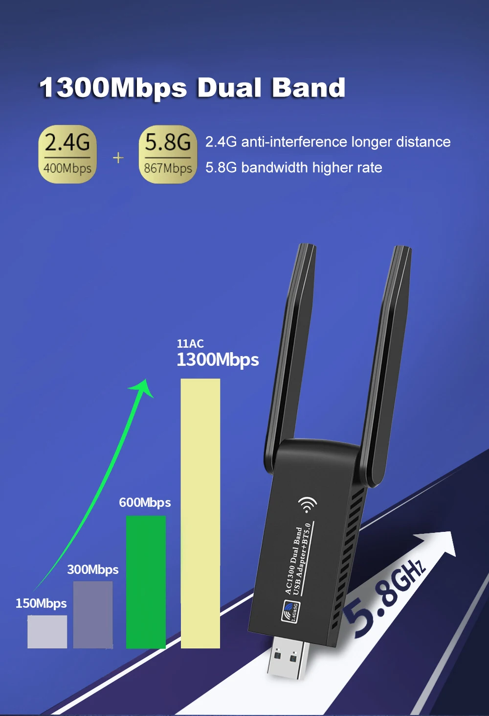1. Nombre del artículo: adaptador WiFi de doble banda de 1300Mbps