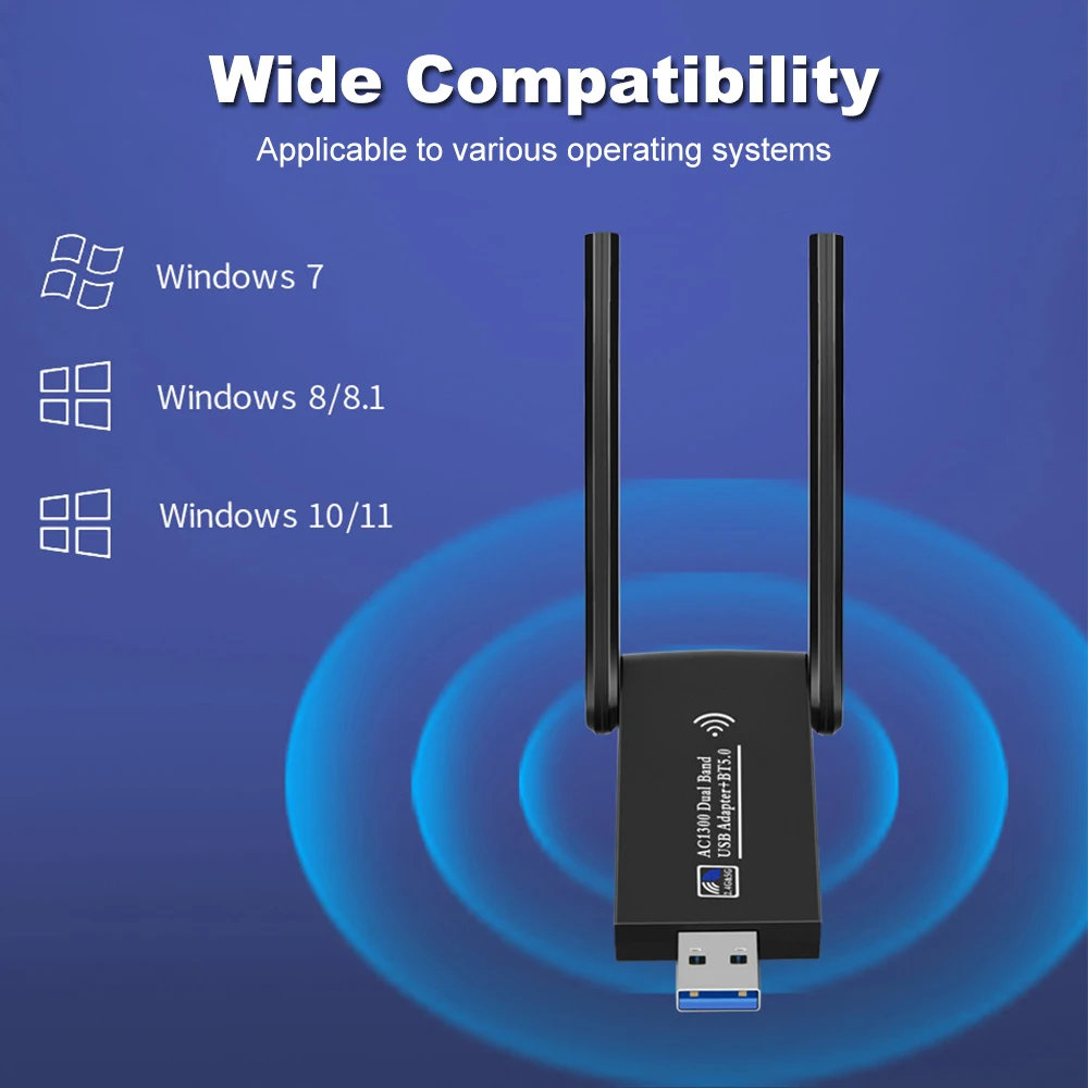 Comprar KuWFi-adaptador WiFi USB de 1300Mbps, tarjeta de red USB3.0, banda Dual, controlador gratuito de 2,4G y 5G, receptor Wifi inalámbrico 802.11AC para ordenador portátil y PC