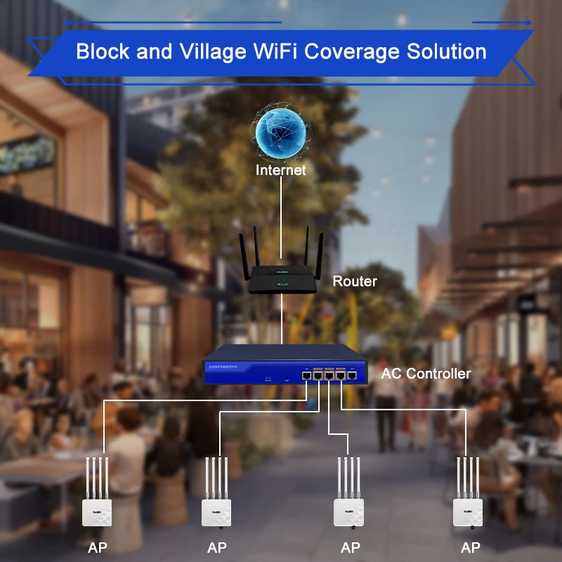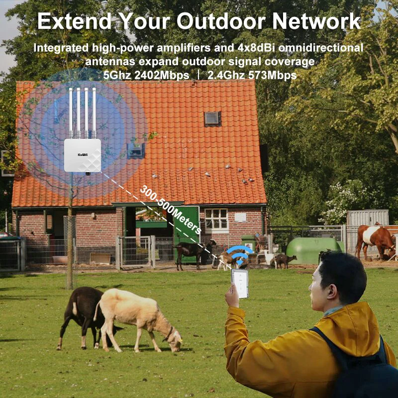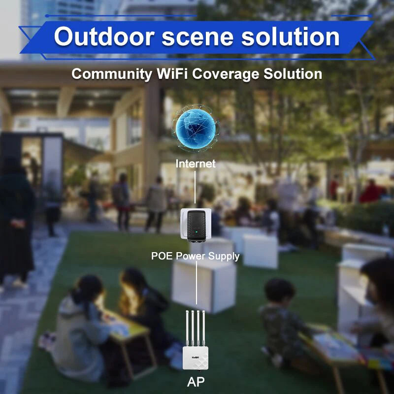 R5: El enrutador está equipado con una antena wifi omni y admite transmisión de señal de 360 grados, lo que lo hace adecuado para diversos escenarios.Áreas abiertas como fábricas, parques, jardines, etc.