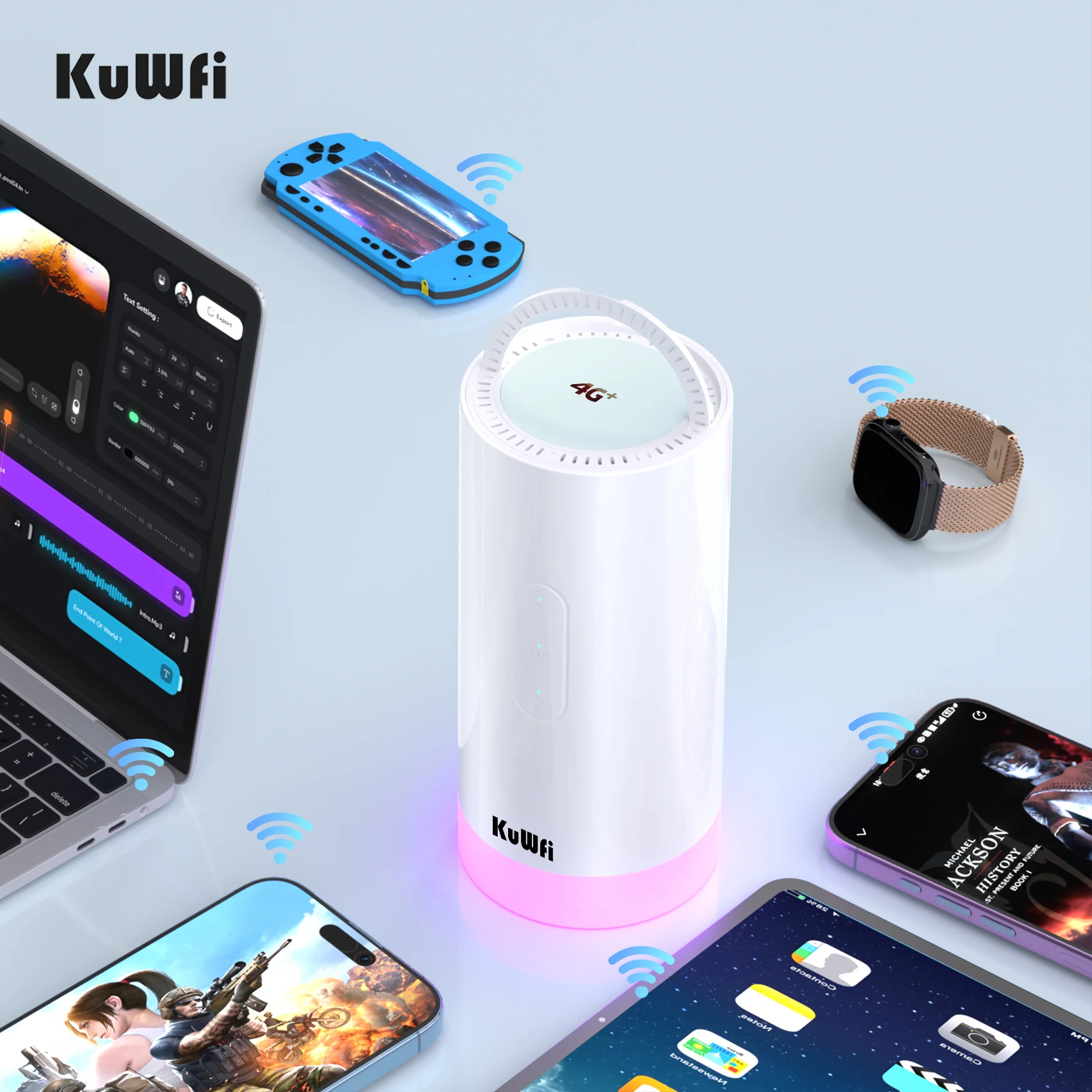 Enrutador KuWFi C290 2 en 1 4G LTE y luz inteligente para acampar, batería de 10000mAh, iluminación de 5 colores, bandas globales
