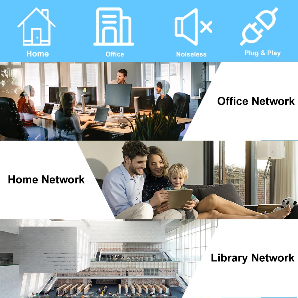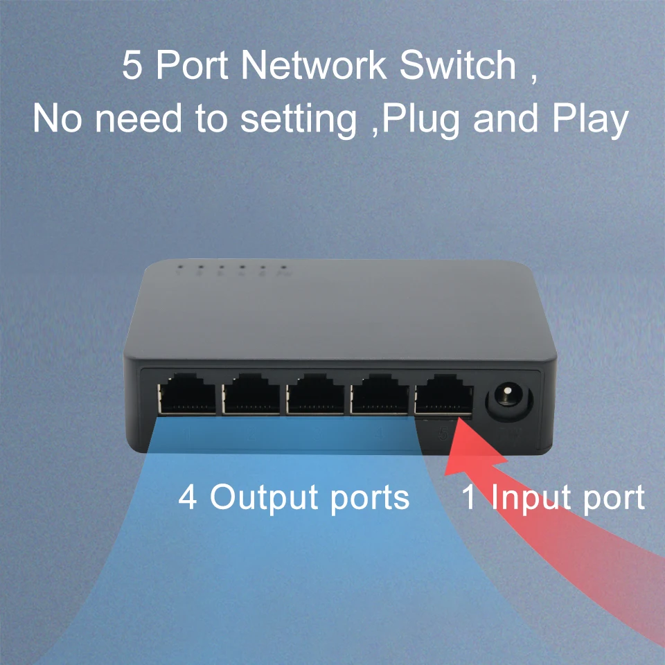 • Velocidad de 10/100/1000Mbps :Este switch KuWFi ofrece una velocidad de transmisión de 10/100/1000Mbps, proporcionando una conexión rápida y estable para todos los dispositivos conectados.
