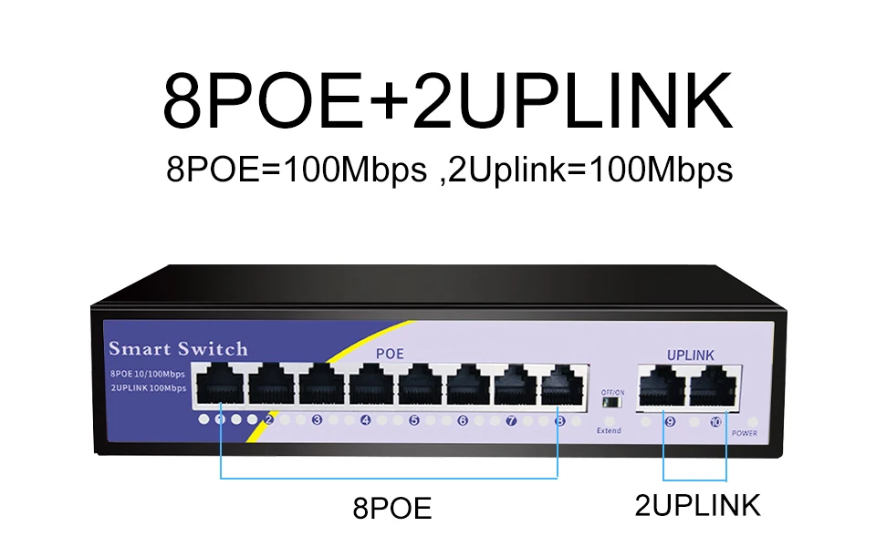 Nombre del producto: Interruptor POE de 10 puertos 10/100M (8 + 2)