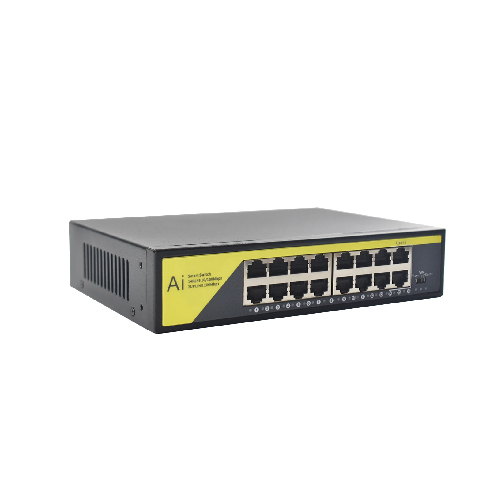 Conmutador PoE de 1,16 puertos: 14 puertos PoE de 10/100 Mbps + 2 puertos de enlace ascendente Ethernet rápido de 2x10/100 Mbps para conexión de enrutador/NVR, Plug & Play.