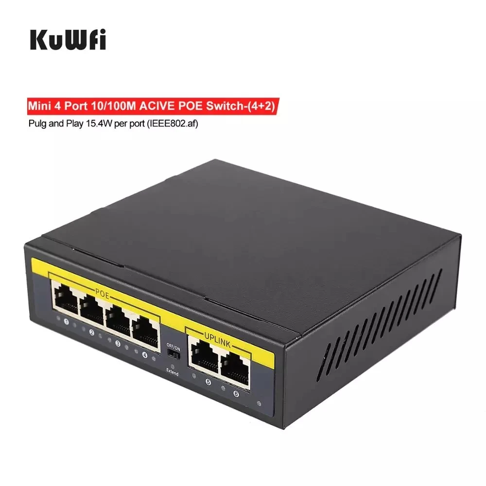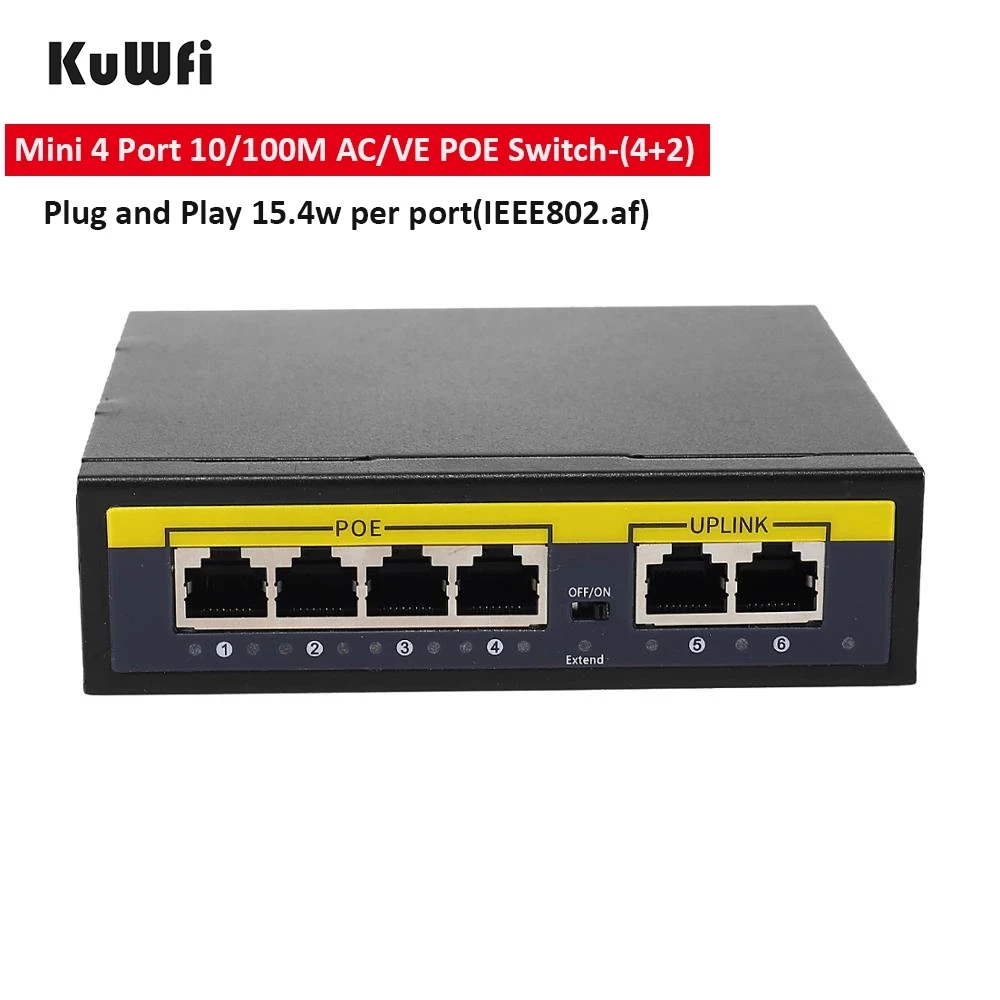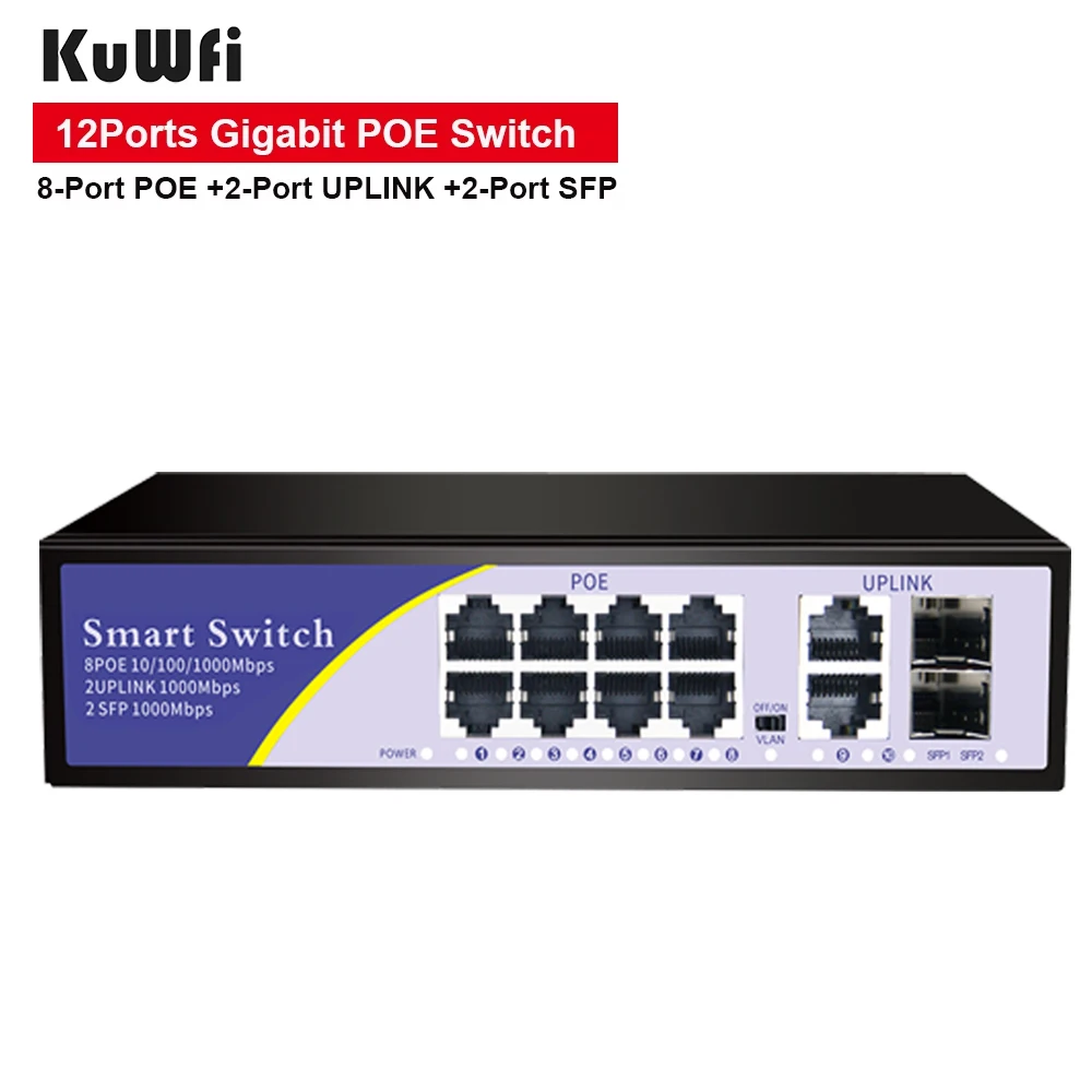 Comprar KuWFi-conmutador POE de 52V, conmutador de red Ethernet de 100Mbps/1000Mbps, 6/12 puertos, 802,3 af/at, red Ethernet para cámara IP/AP inalámbrico