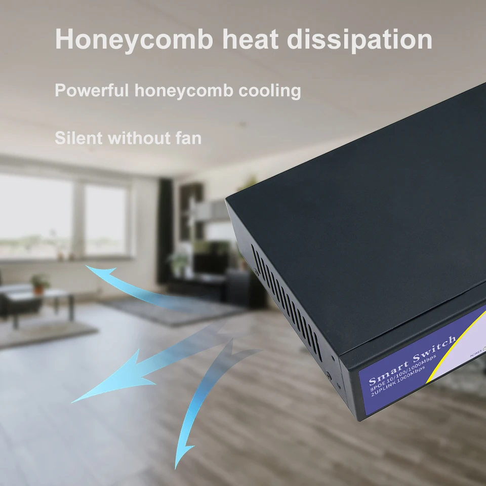4.Advanced auto-sensing algorithm gives power to 802.3af end devices, In addition, the PoE switch automatically determines PoE requirements, speed, duplex, and cable type using Auto Uplink. Easy to operate and reliable.