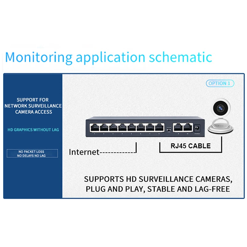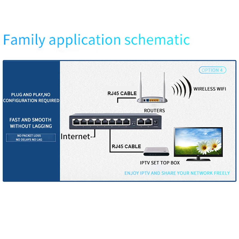 【Velocidades Gigabit estable】Conmutador Ethernet de puertos RJ45 de 10 × 10/100/1000Mbps compatible con negociación automática y MDI/MDIX automático, proporciona velocidad estable a cada dispositivo. Ampliando enormemente la capacidad de su red, permitiendo la transferencia instantánea de datos de archivos grandes, este interruptor de red es adecuado para Internet doméstico y de oficina