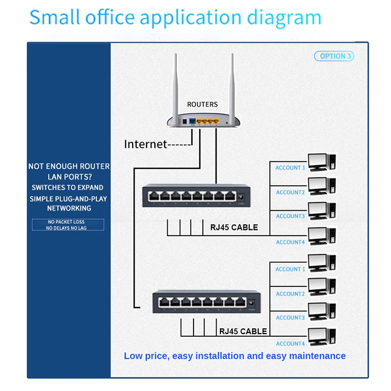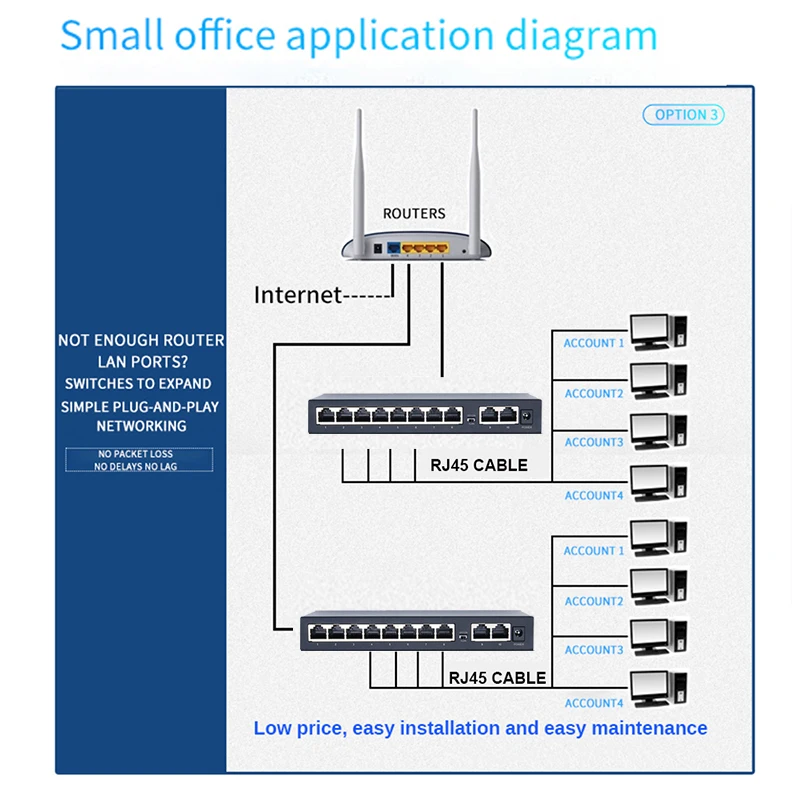 【Plug and Play】No hay requisitos para la aplicación o la configuración. El divisor Ethernet tiene un pequeño diseño de montaje en pared, se coloca fácilmente en su escritorio o en una pared, es compacto y se puede colocar en cualquier lugar