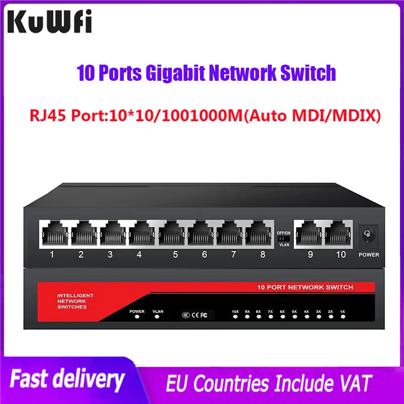Comprar KuWFi-conmutador de red Gigabit, conmutador con 10 puertos, 10/100/1000Mbps, RJ45, IEEE802.3u, Ethernet para el hogar