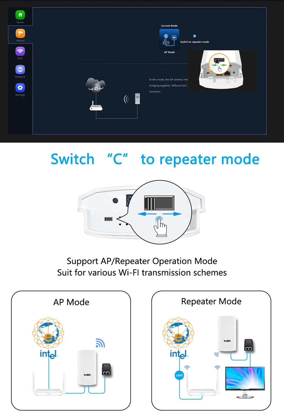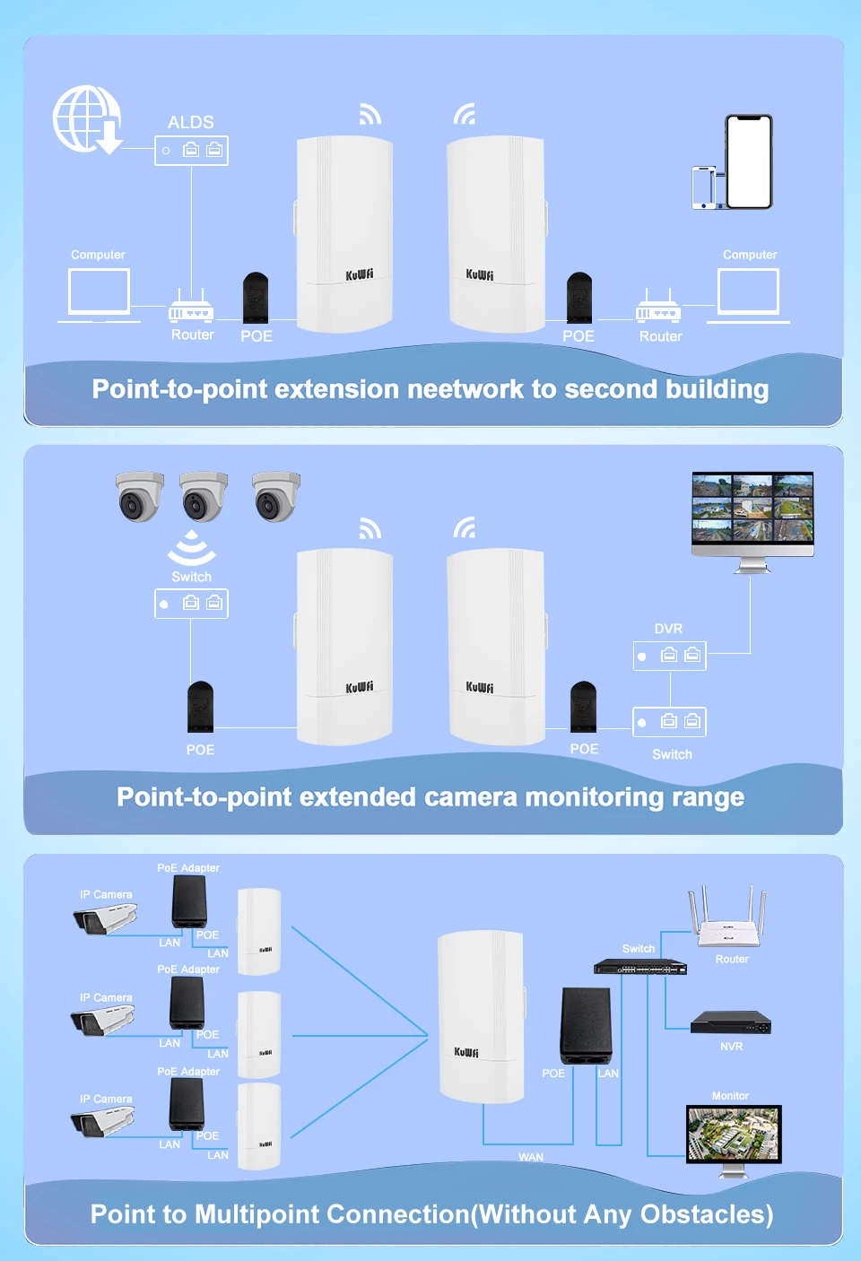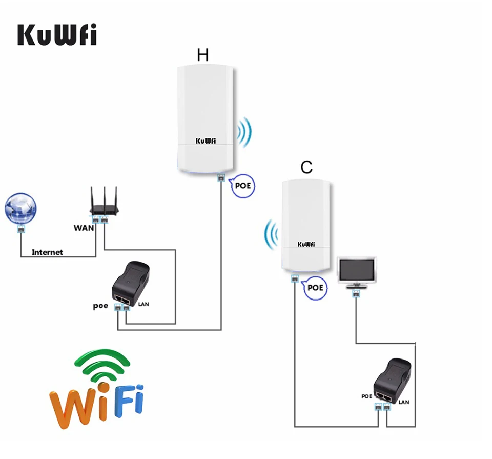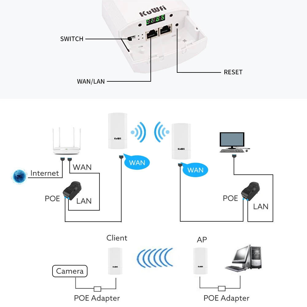 Comprar KuWFi-enrutador CPE inalámbrico para exteriores, 900Mbps, repetidor inalámbrico de 5,8G, enrutador AP, puente Wifi CPE, punto a punto, cobertura Wifi de 1-3KM