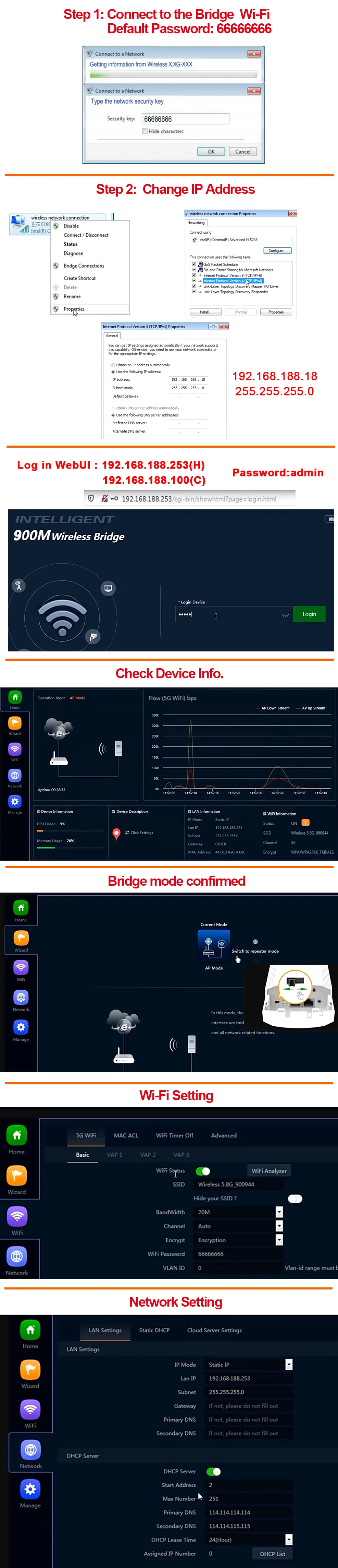 1.El puente CPE produce 5,8G 900Mbps, puente inalámbrico para exteriores con extensor WiFi de largo alcance CPE con pantalla LED para configurar la conexión PT/PTMP.