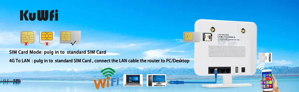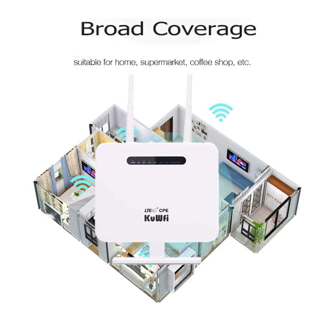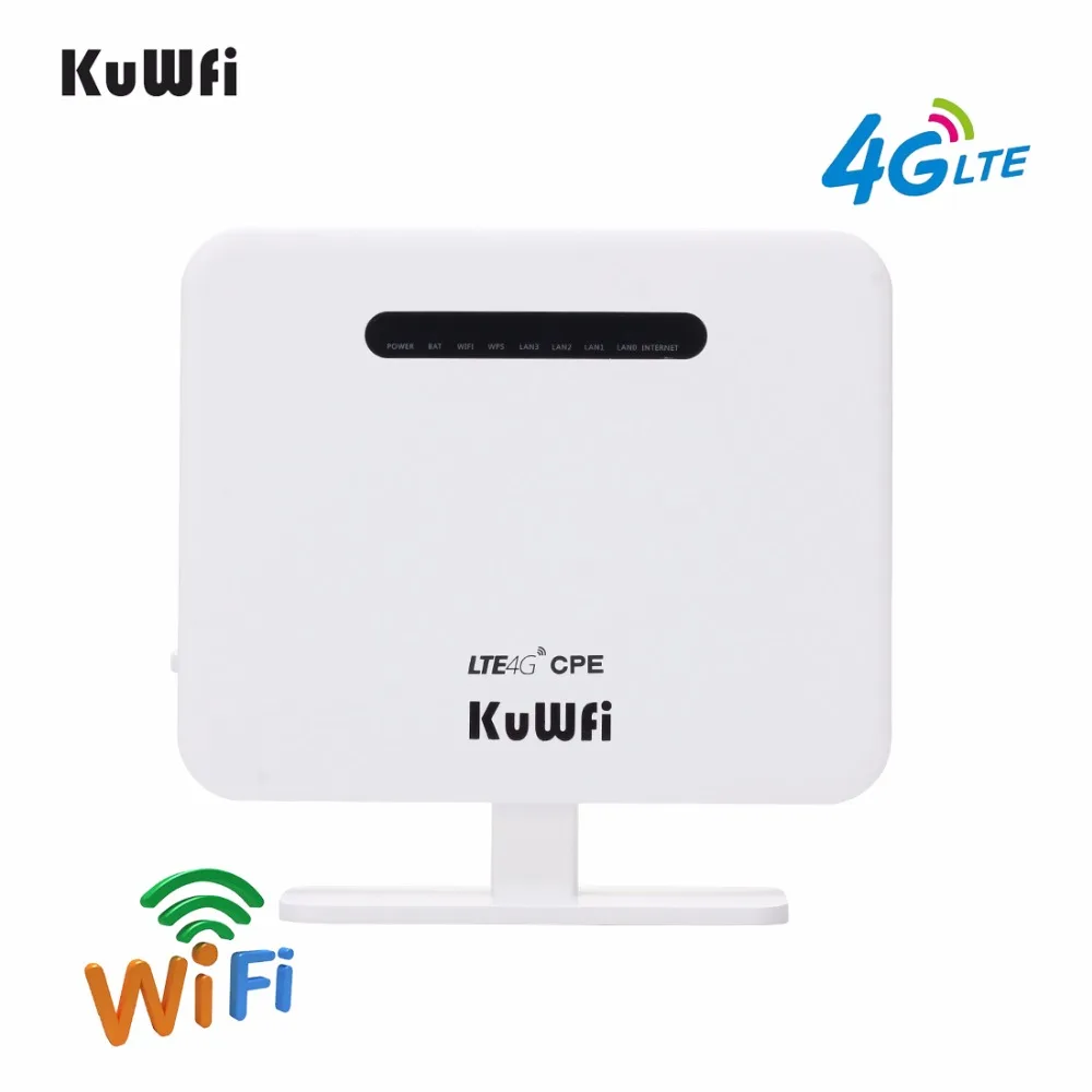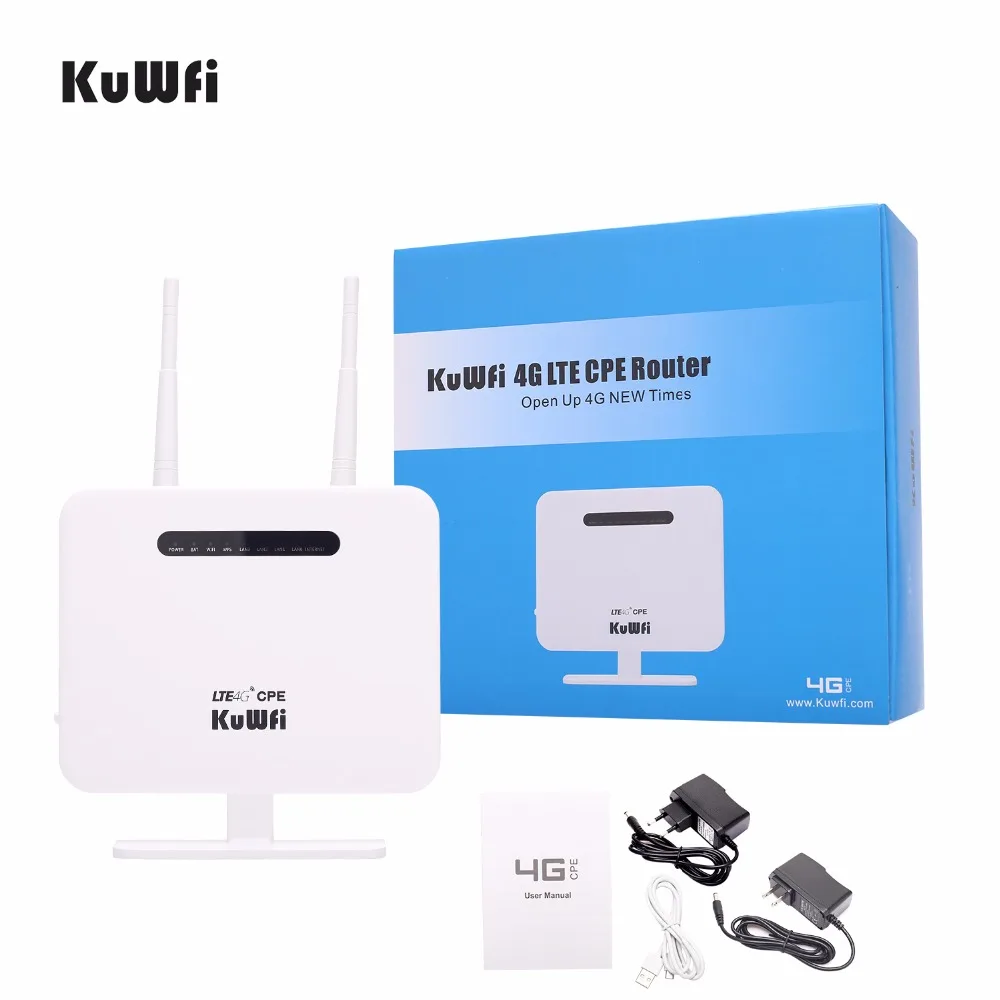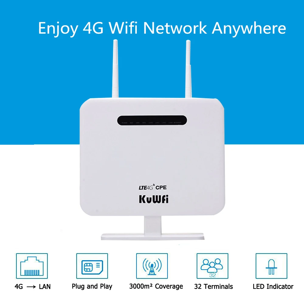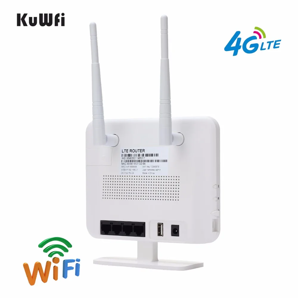 Comprar KuWFi-enrutador inalámbrico 4G LTE de 150Mbps, tarjeta SIM, 4 puertos LAN, 2 antenas de piezas, Router para exteriores, punto de acceso, red móvil, antena 5Dbi