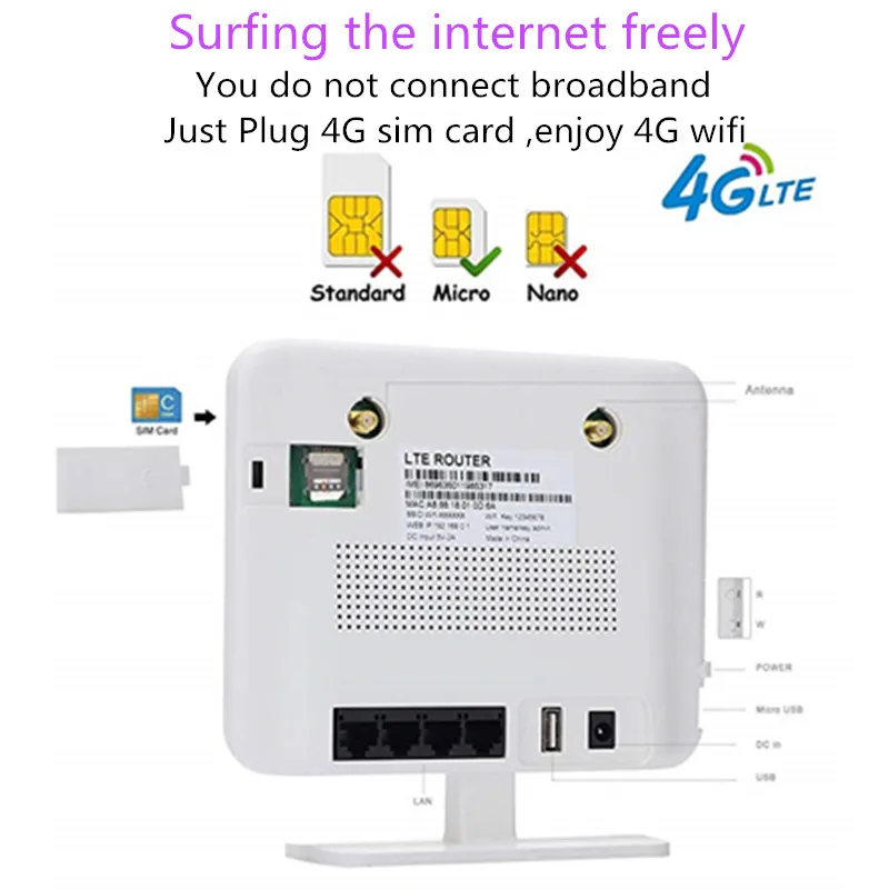---- 4g router está equipada con 3 interfaz LAN cuando el 4G transmite el router WiFi puede conectar a otros dispositivos simultáneamente