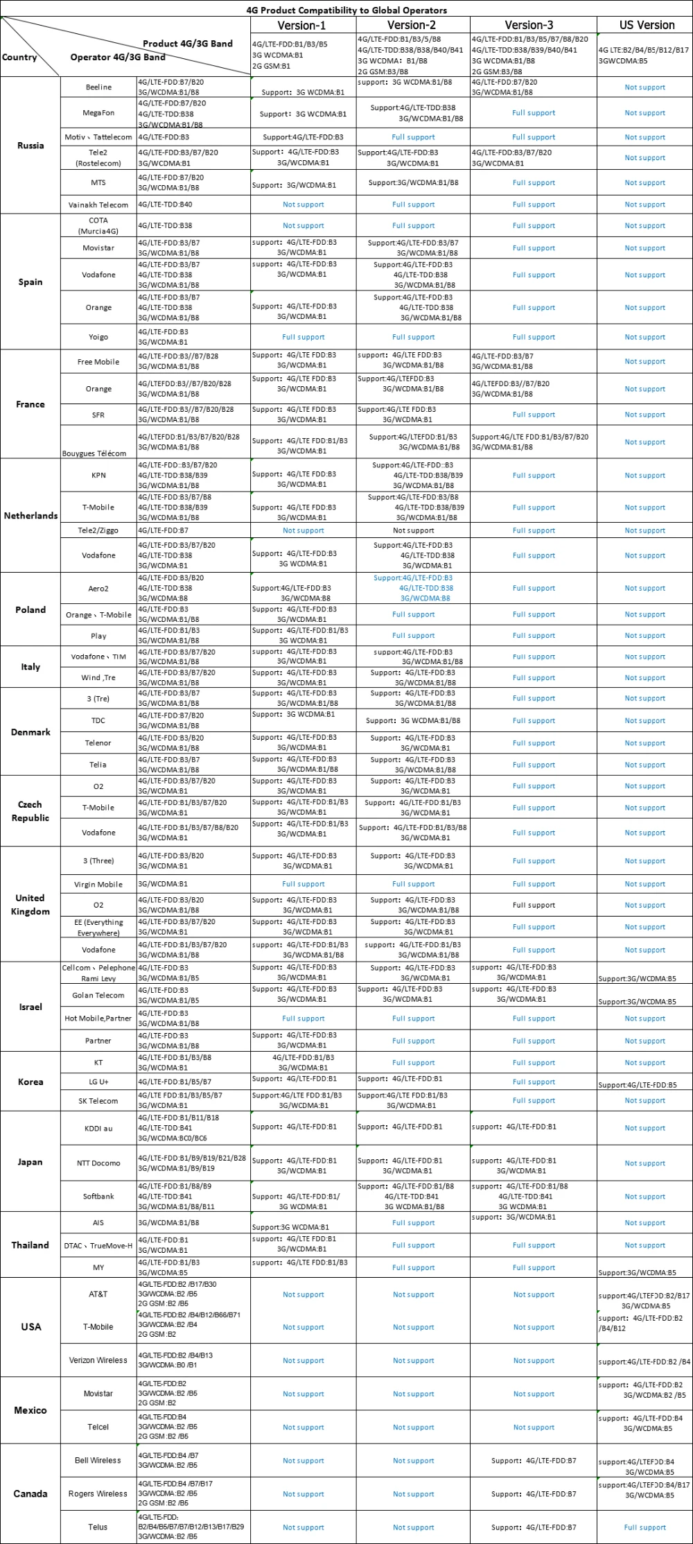 4G LTE FDD: b1/B3/B5/B7/B8/B20(2100/1800/850/2600/900/800MHZ)