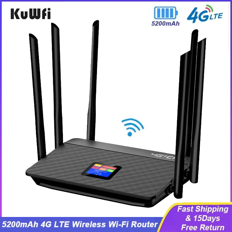 Comprar KuWfi-enrutador inalámbrico 4G LTE, 5200mAh, 150Mbps, CPE, antenas externas de alta ganancia con ranura para tarjeta Sim, Puerto RJ45, pantalla LCD
