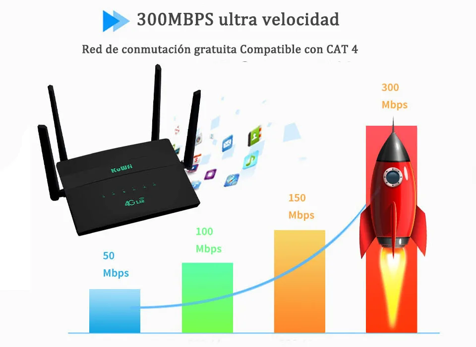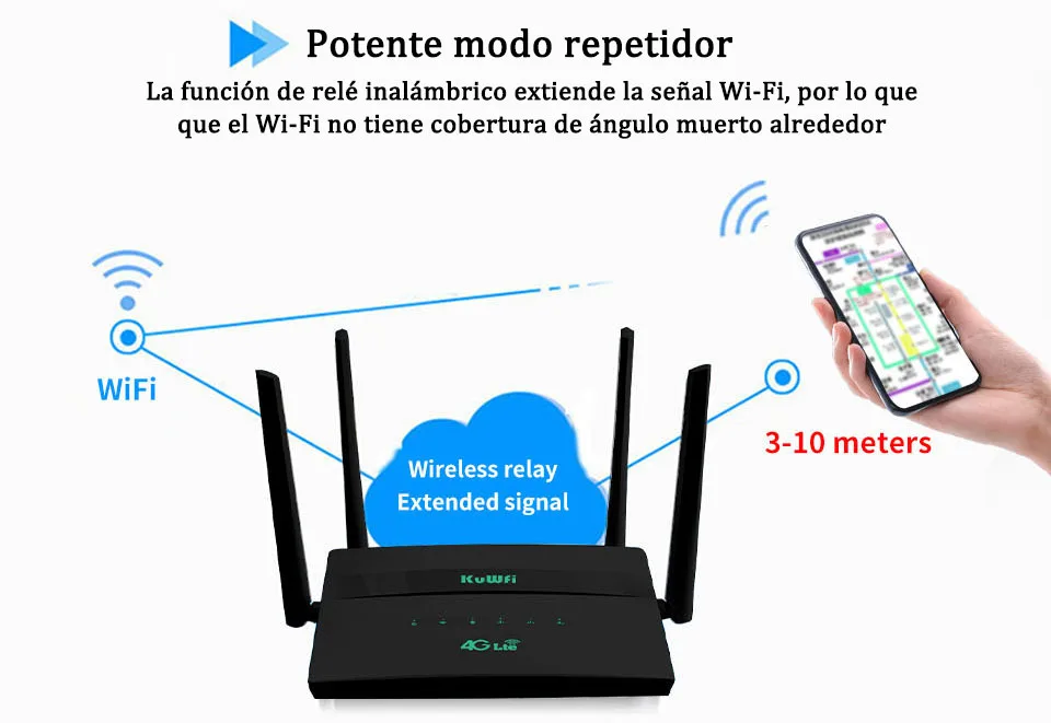 Router Wifi 4G con ranura para tarjeta sim, con puerto WAN/LAN,