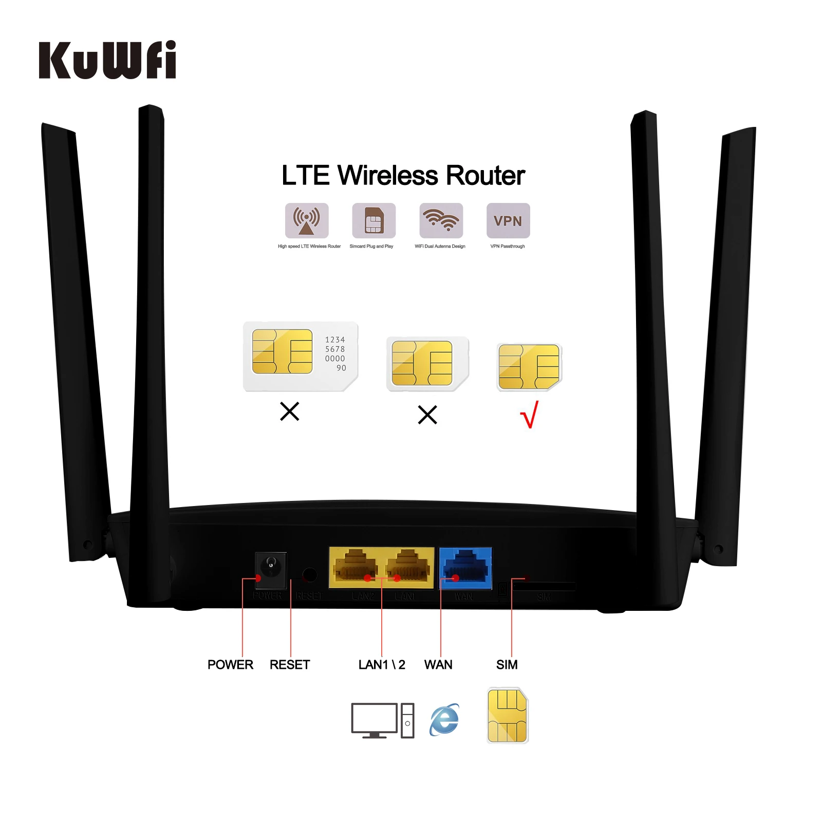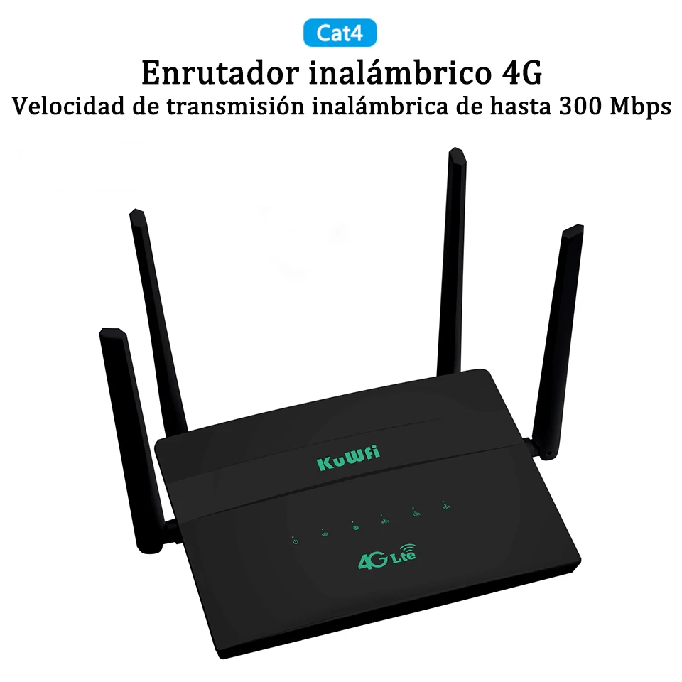 Comprar KuWfi-enrutador inalámbrico 4G, punto de acceso Wifi de 150Mbps con ranura para tarjeta SIM, puerto LAN WAN RJ45, compatible con 10 dispositivos, 4 antenas de alta ganancia