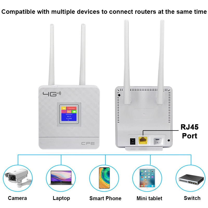 Enrutador 2,4G CPE equipado con 1 interfaz LAN, cuando el enrutador 4G transmite el WiFi, puede conectarse a otros dispositivos simultáneamente.
