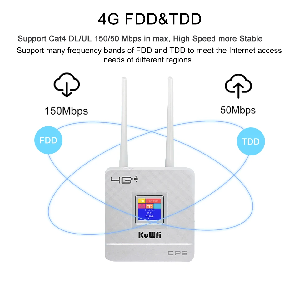 3. Admite velocidad WIFI 4G, DL/UL 150/50 Mbps máx., alta velocidad más estable