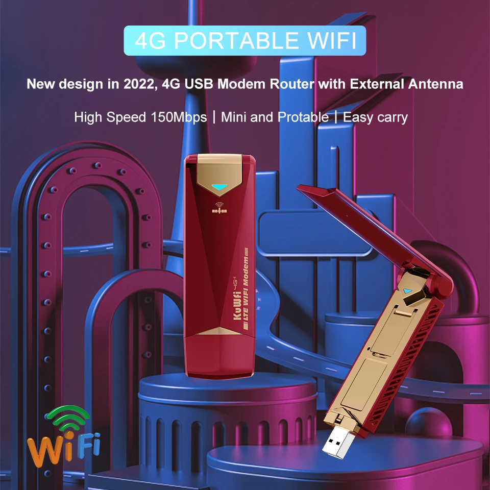 Comprar KuWfi-enrutador móvil 4G de 150Mbps, enrutador Wifi USB de 2,4 GHz con ranura para tarjeta SIM, minienrutador portátil con antena integrada, hasta 10 usuarios