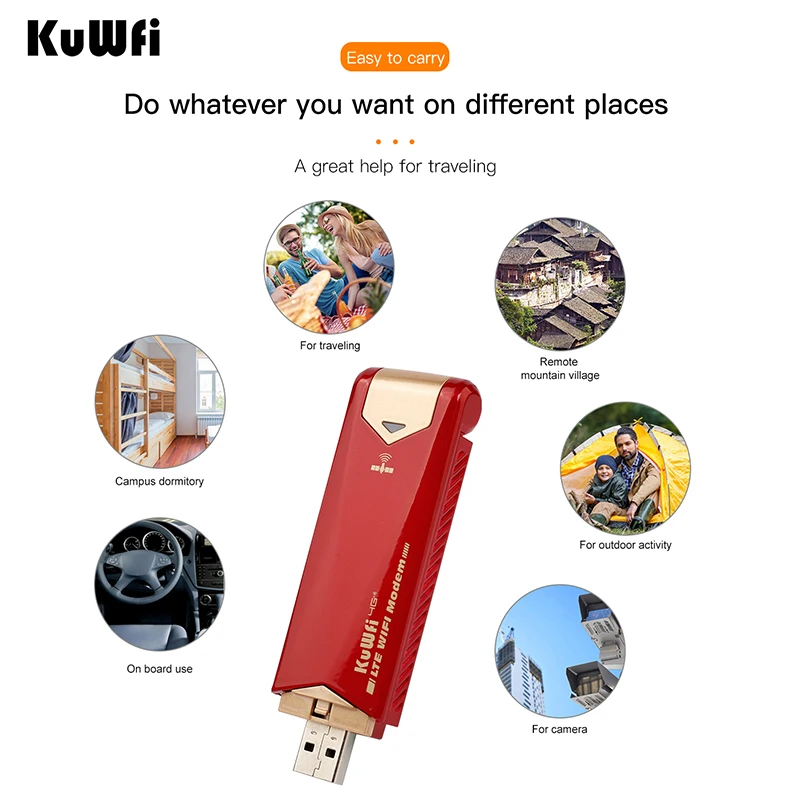 Comprar KuWfi-enrutador móvil 4G de 150Mbps, enrutador Wifi USB de 2,4 GHz con ranura para tarjeta SIM, minienrutador portátil con antena integrada, hasta 10 usuarios