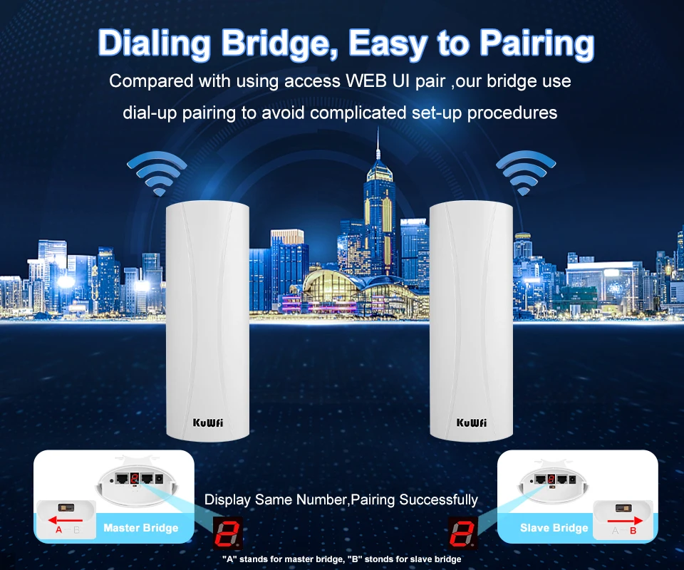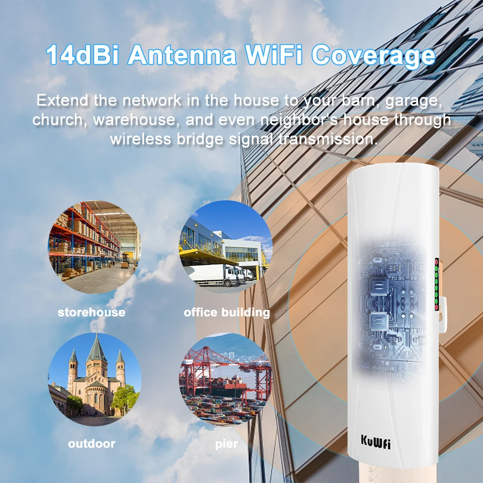 3. Punto a punto 1-3km puente inalámbrico incorporado 14DBi antena de alta ganancia que proporciona un rendimiento inalámbrico aún mejor, tasas de transmisión, tecnología de estabilidad evita automáticamente conflictos de canal utilizando su función de selección de canal.