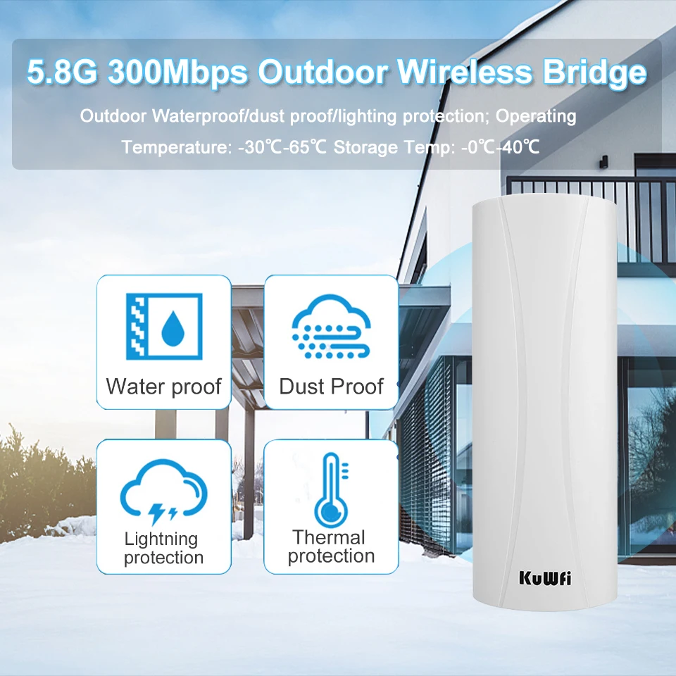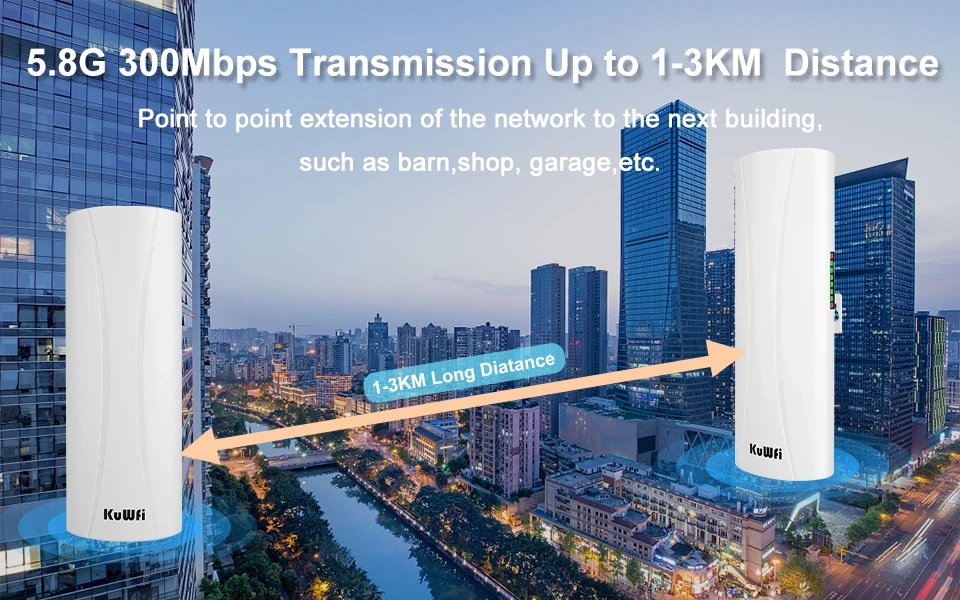 5,8G 300Mbps Transmisión hasta 1-3KM de distancia