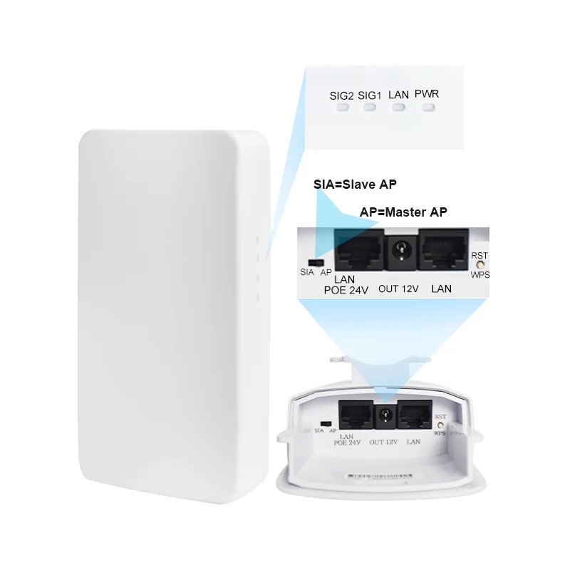 7.Equipado con puertos LAN de 2*10/100M, la velocidad de datos Ethernet es 2 veces más rápida que el CPE normal, admite puerta de enlace (PPPOE, IP estática, IP dinámica), AP inalámbrico