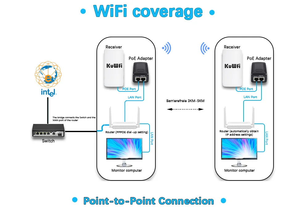5.Solución eficaz para aplicaciones PTP, PTMP y cámaras IP (cámara) y DVR de red fáciles de usar para configurar CPE