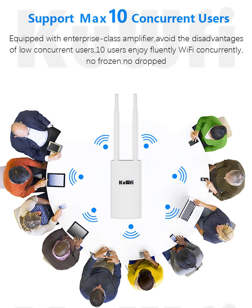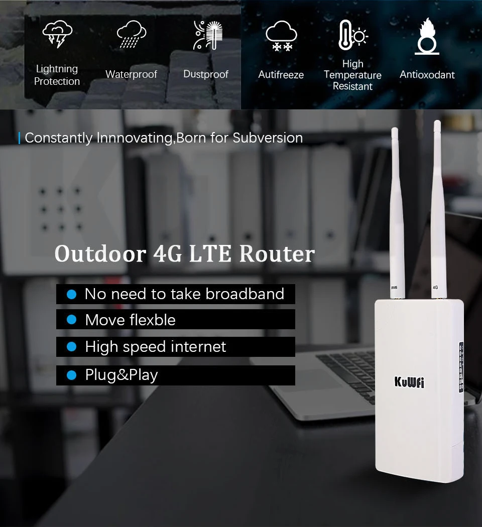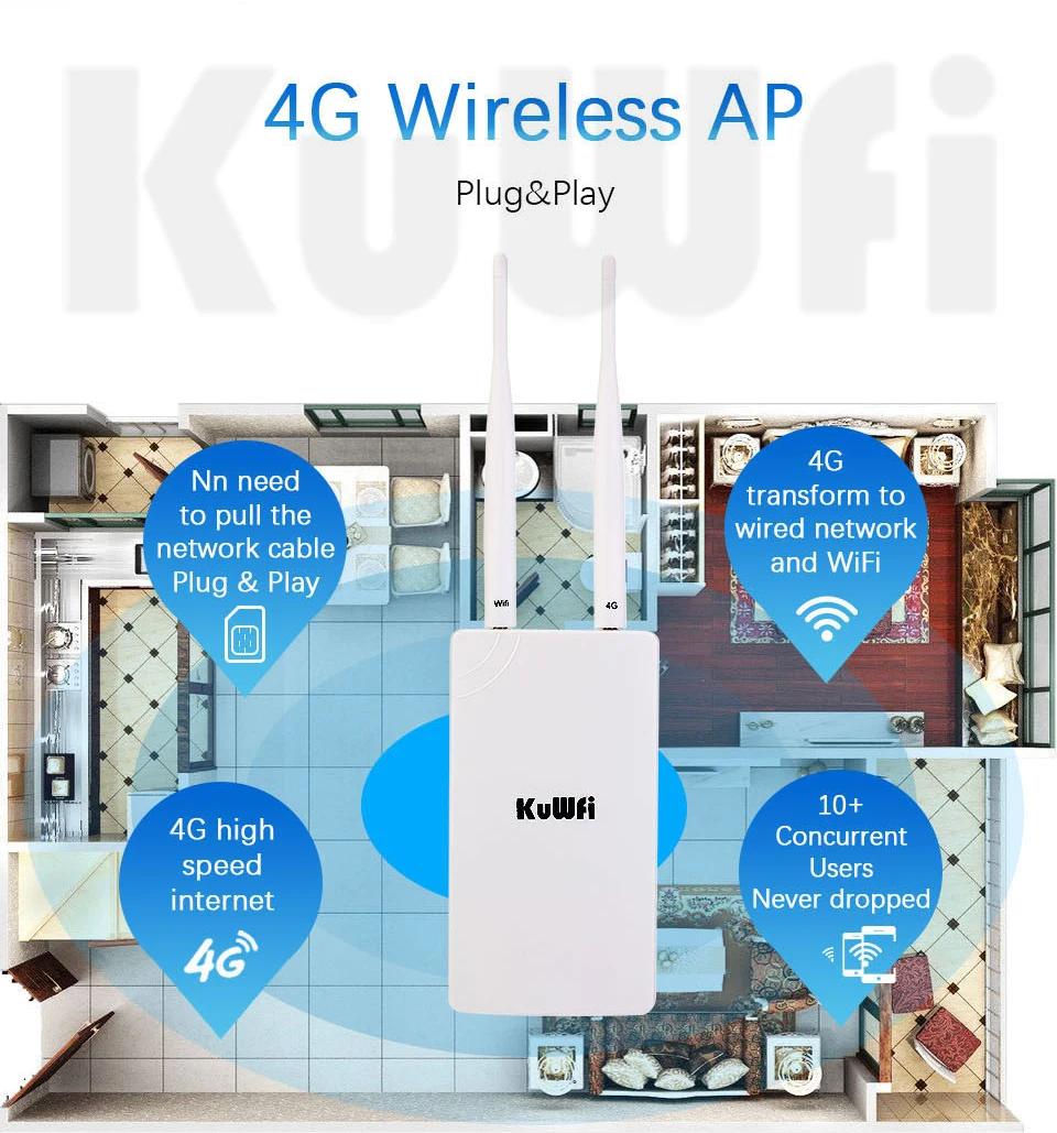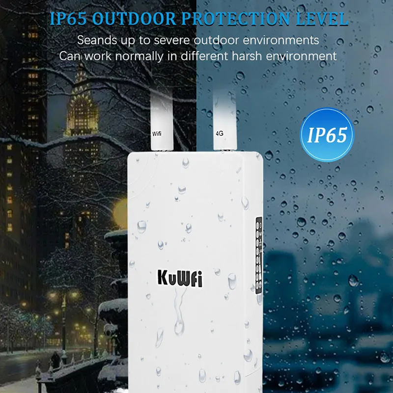 Comprar KuWFi-enrutador Wifi 4G para exteriores, enrutador Wi fi de 300Mbps con tarjeta Sim, extensor de refuerzo impermeable para Wifi para todo tipo de clima para cámara IP