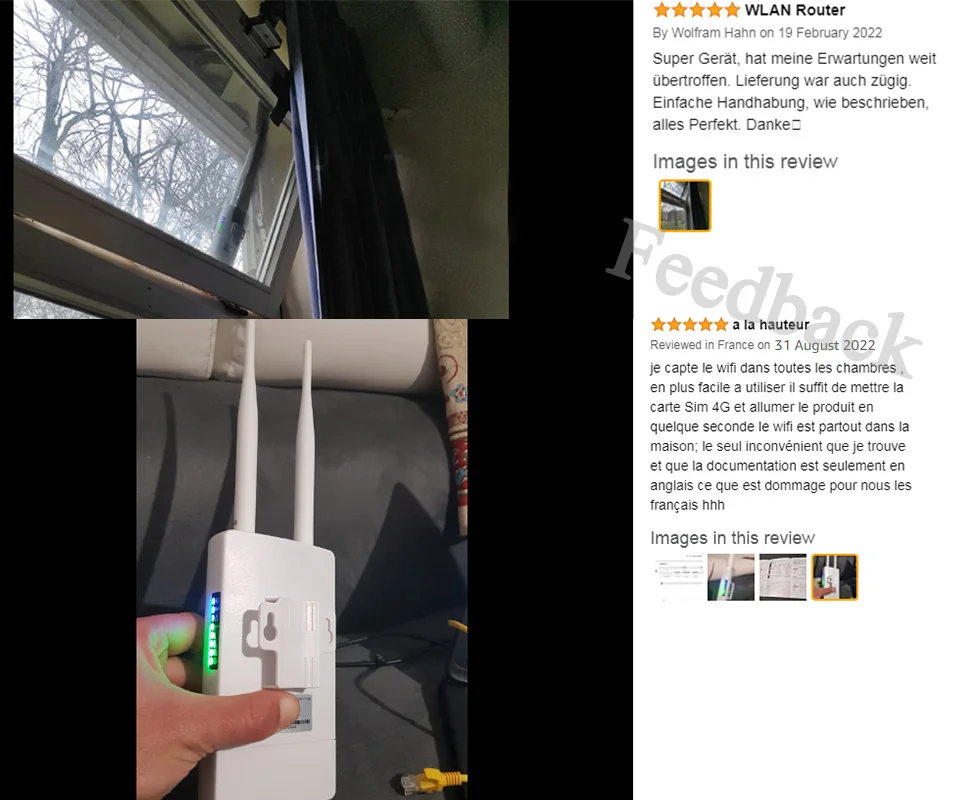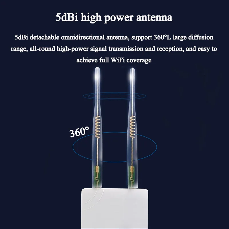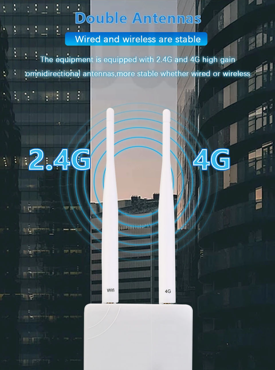 El dispositivo está equipado con antenas omnidireccionales de alta ganancia de 2,4G y 4G, ya sea cableadas o inalámbricas. El acceso a Internet es más estable.