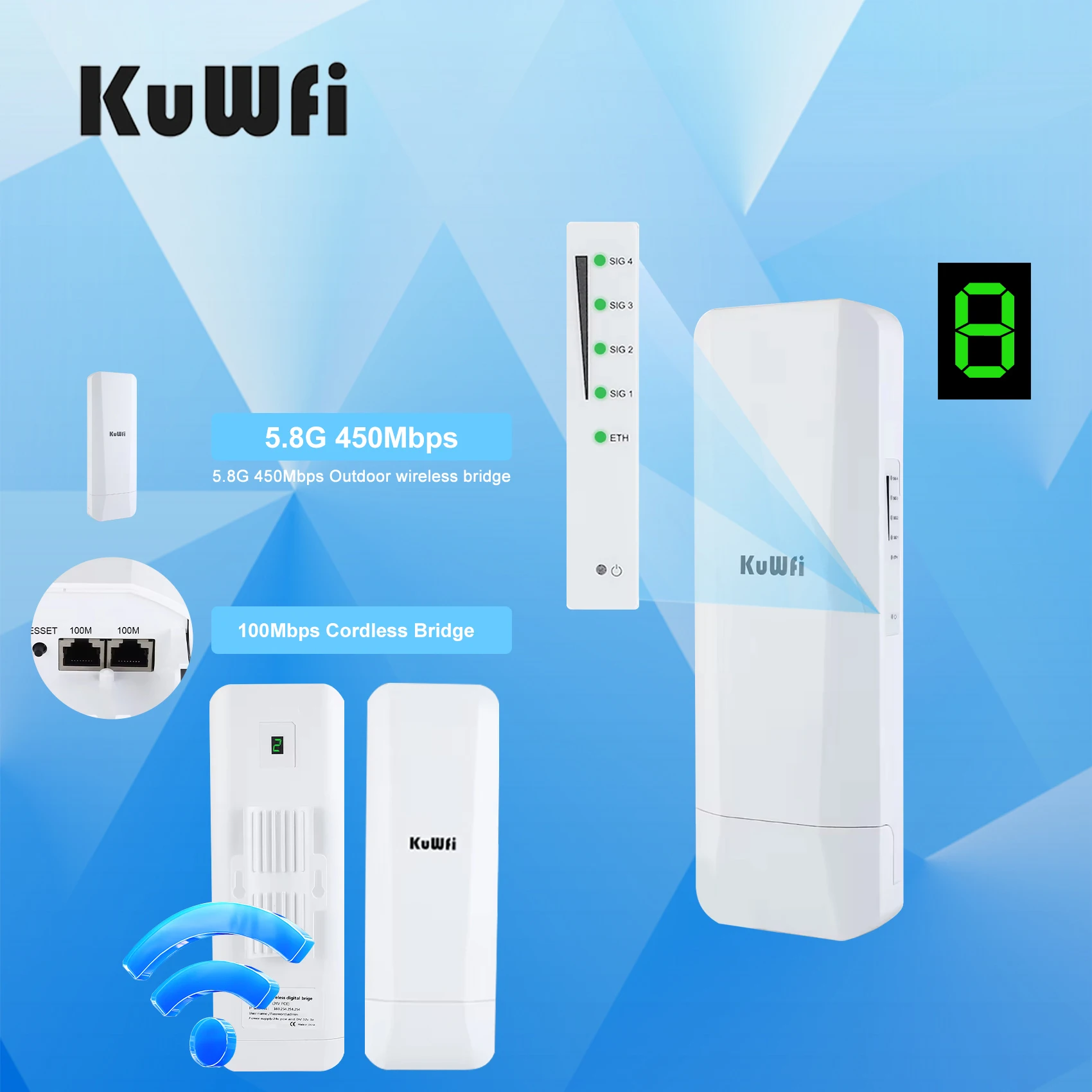 Comprar KuWFi-enrutador Wifi 5,8G para exteriores, puente Wifi de 450Mbps, extensor de largo alcance/puente de acceso inalámbrico para cámara de punto a punto de 3km