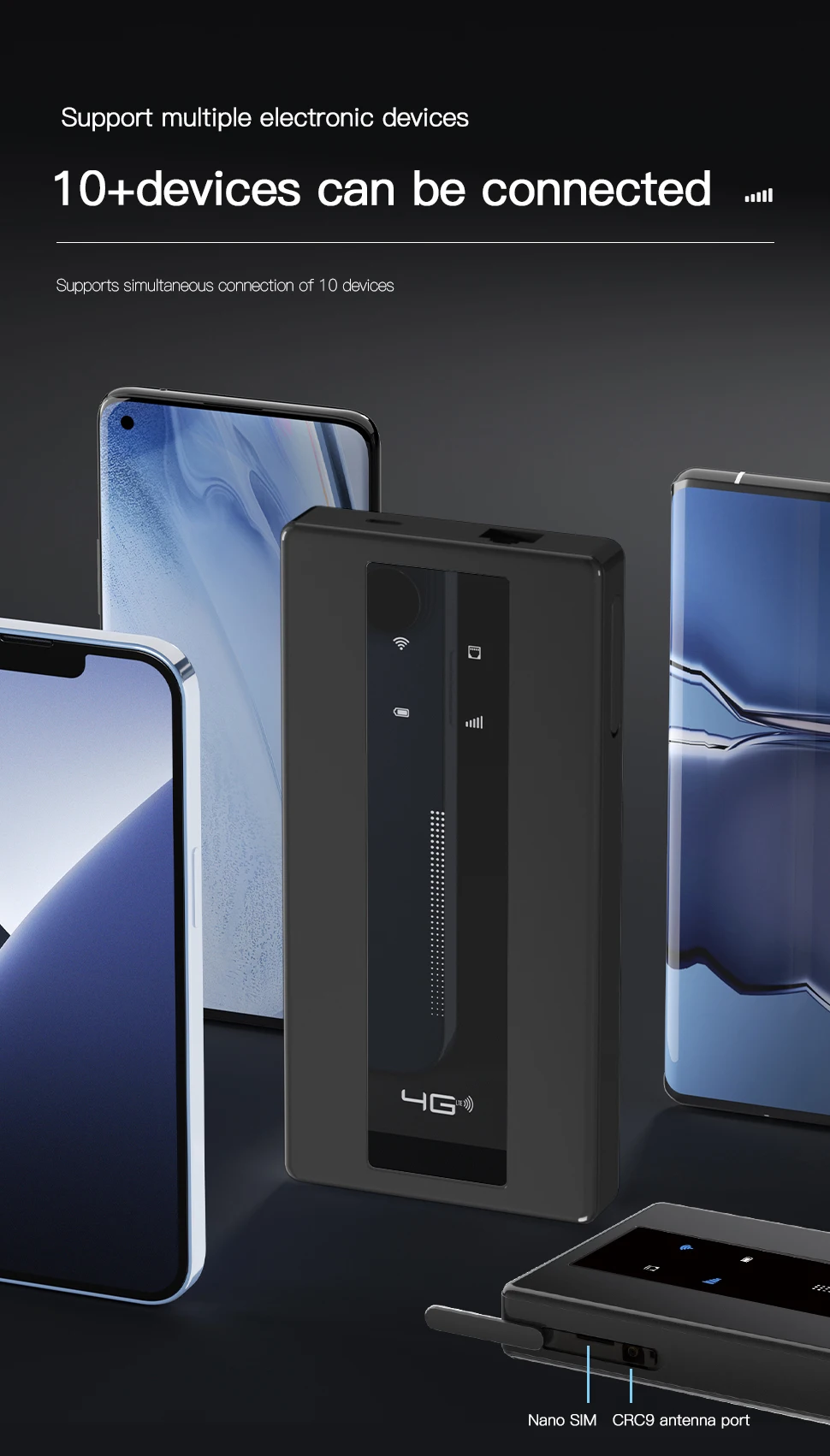 La conexión a Internet compartida alcanza los 10 usuarios/dispositivos WiFi, navegando por Internet con su familia o amigos simultáneamente sin demoras.