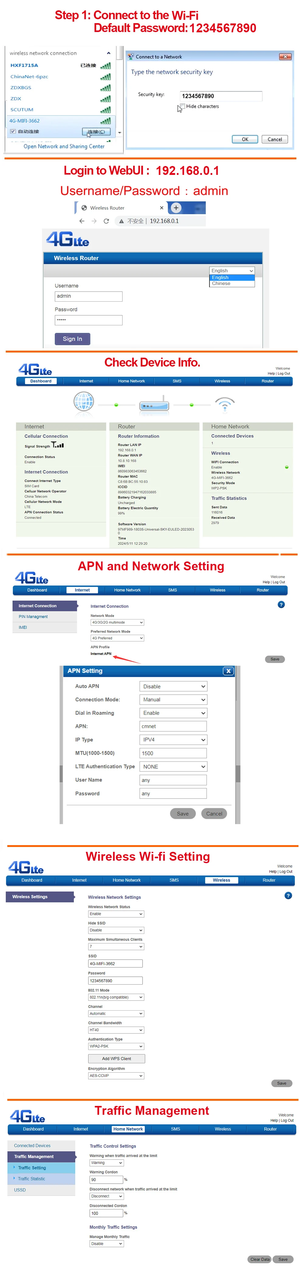 A3: Ingrese la dirección IP del enrutador y busque la configuración APN.Modifica el APN.Puede consultar el APN de la tarjeta SIM en el sitio web oficial del operador o en el teléfono móvil.Verifique que la tarjeta SIM esté activada.