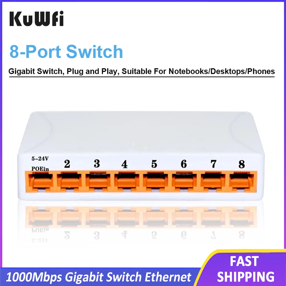 Comprar KuWFi Gigabit Switch Ethernet 1000Mbps concentrador RJ45 de alto rendimiento divisor de Internet interruptor de red Ethernet interruptor inteligente