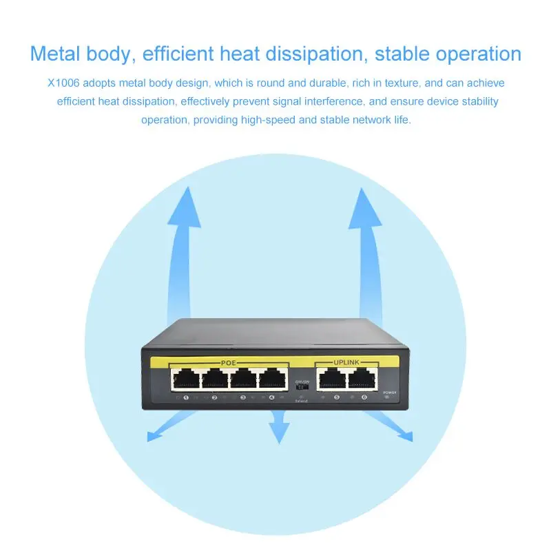 5. El interruptor PoE es ideal para alimentar dispositivos PoE como cámaras IP, puntos de acceso WLAN, Teléfonos IP, sistemas de control de acceso de oficina y otros dispositivos PD y ofrece una línea de productos de alta calidad