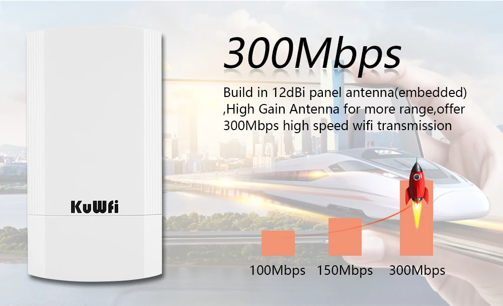 Comprar KuWfi Outdooor puente Wi-Fi inalámbrico 300Mbps puente CPE PTP extensor de largo alcance modo repetidor AP 24V POE protección contra rayos
