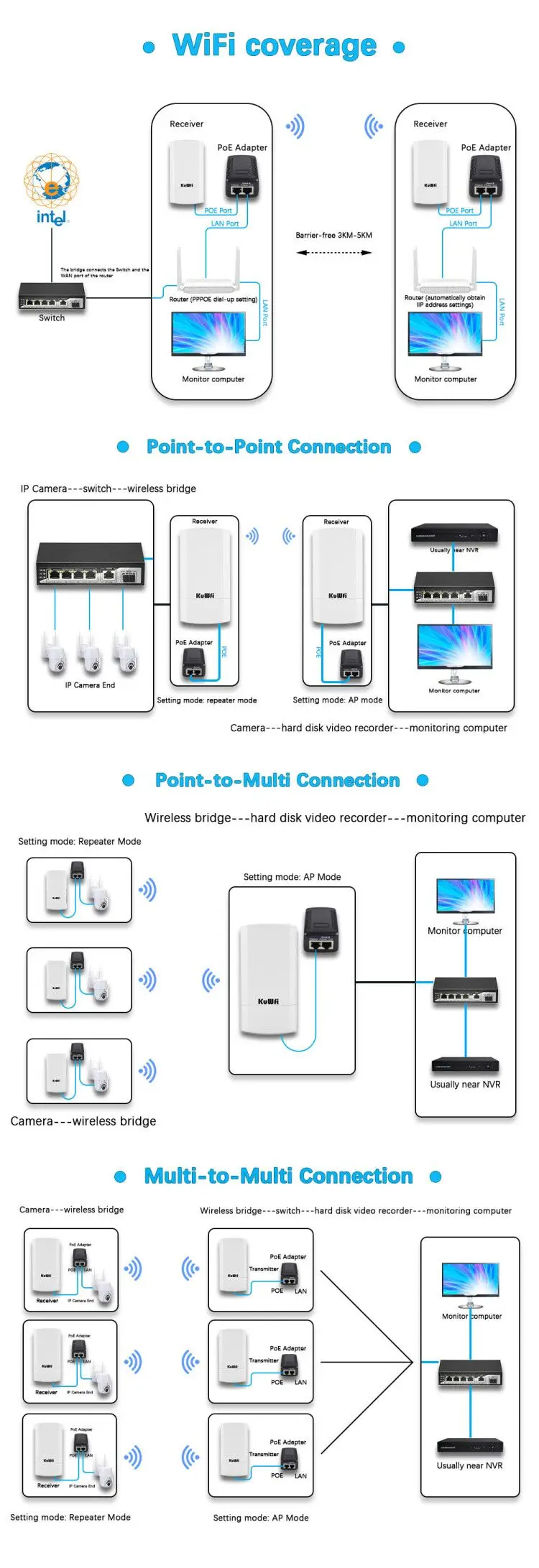 Tenga en cuenta: si desea alcanzar una cobertura Wifi de 300-1000 m, le sugerimos que compre 2 piezas, ¡gracias!