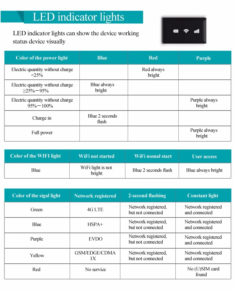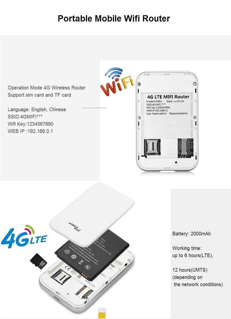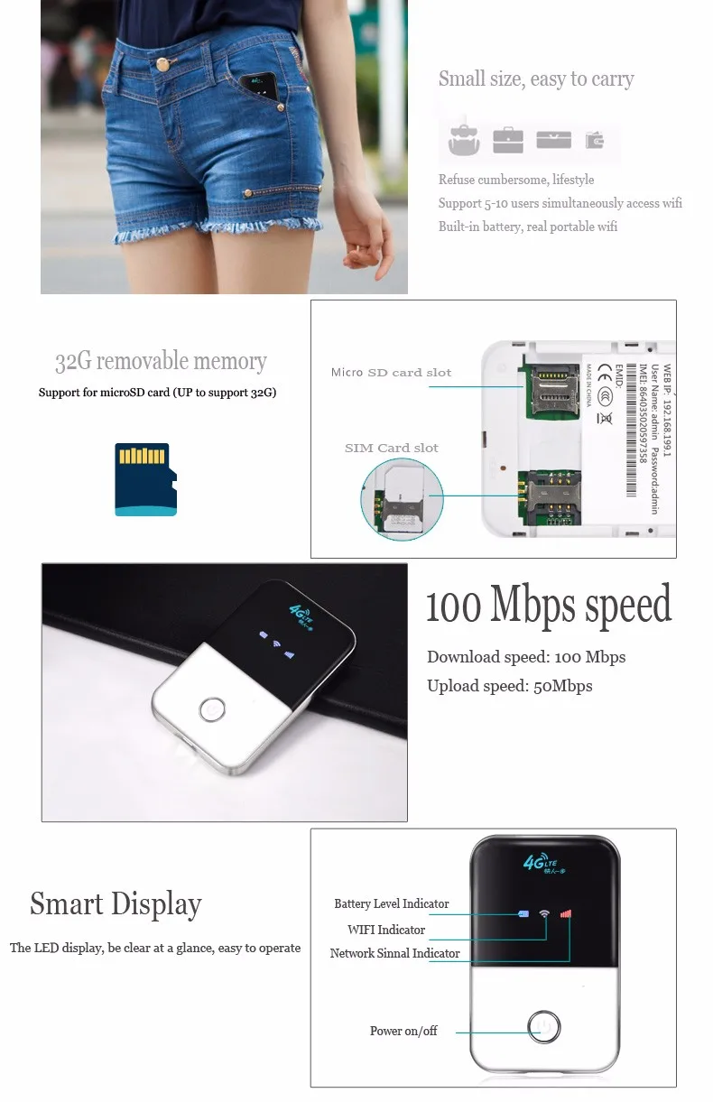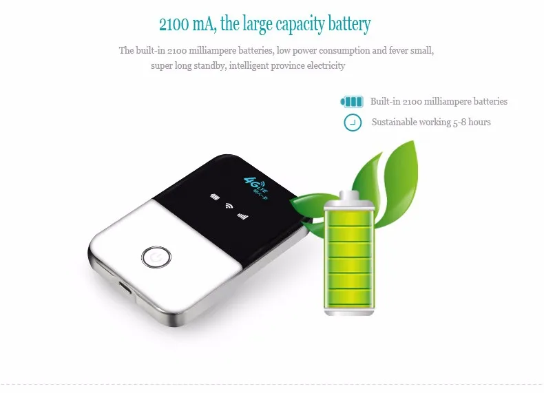 3.Designed for WIFI users to get access to internet via UMTS/HSPA/LTE.In order to connect to high speed network easily and fast,it uses the battery powered
