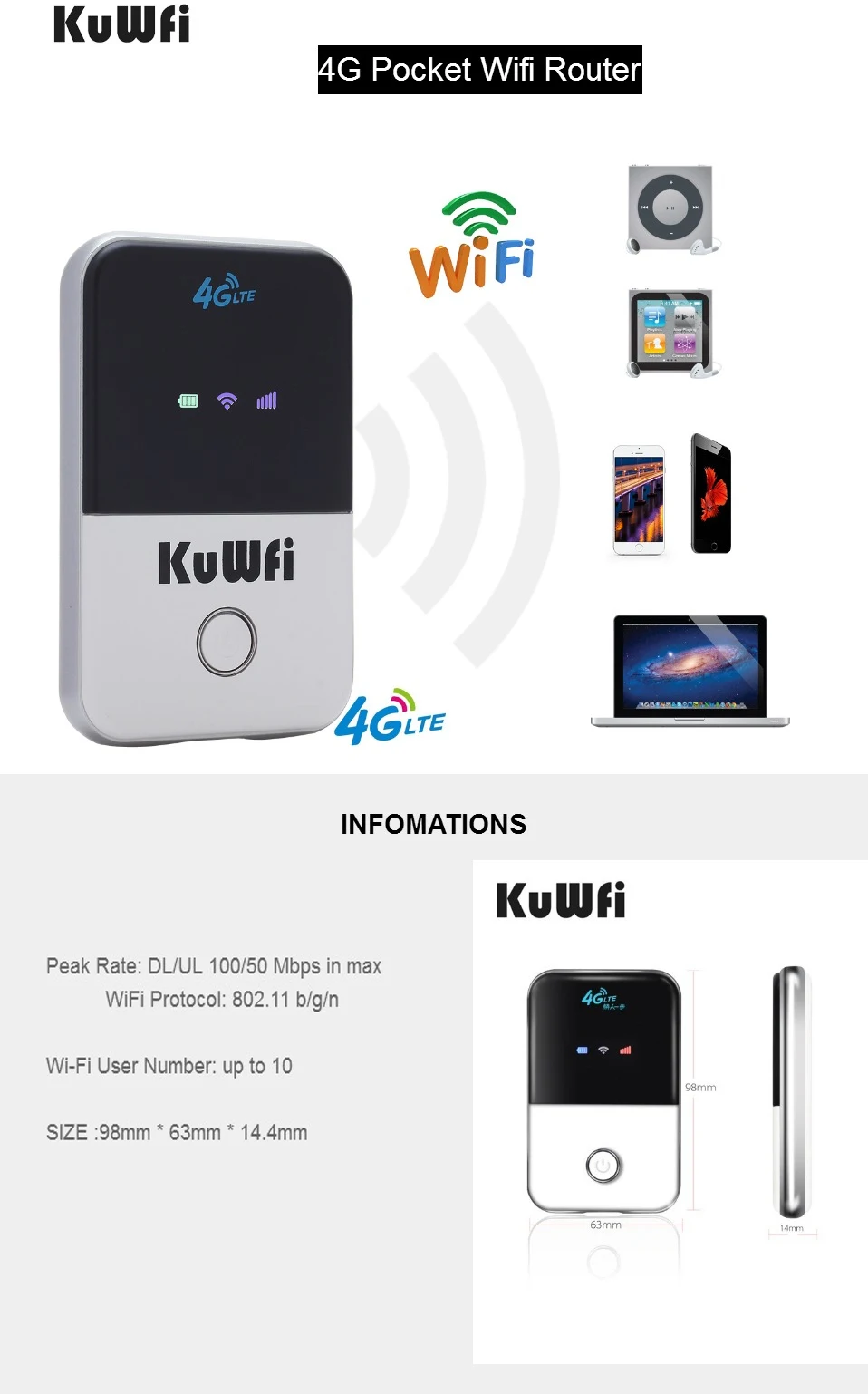 And you can share some more news to your friend and family.KuWFi Unlocked Travel Partner 4G LTE Wireless Router
