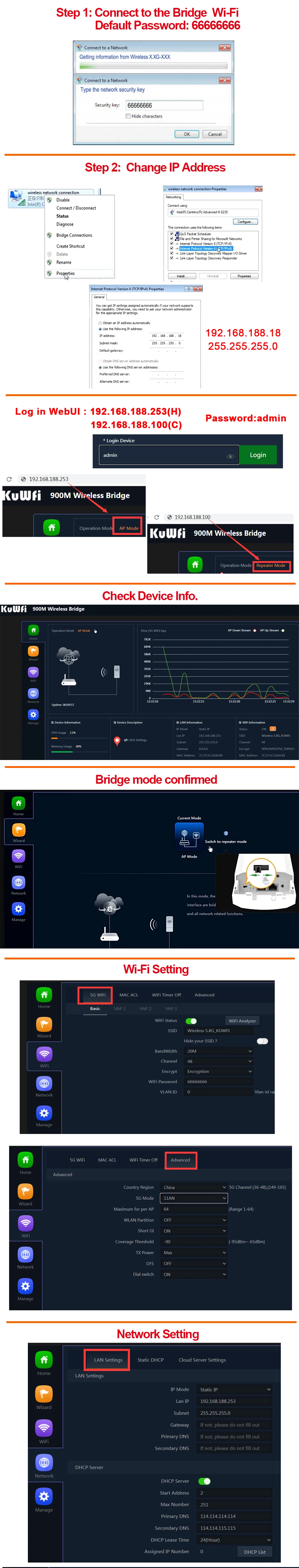 El puente Wi-Fi admite el modo AP universal y el modo Repetidor, con una gama más amplia de escenarios de aplicación de usuario.