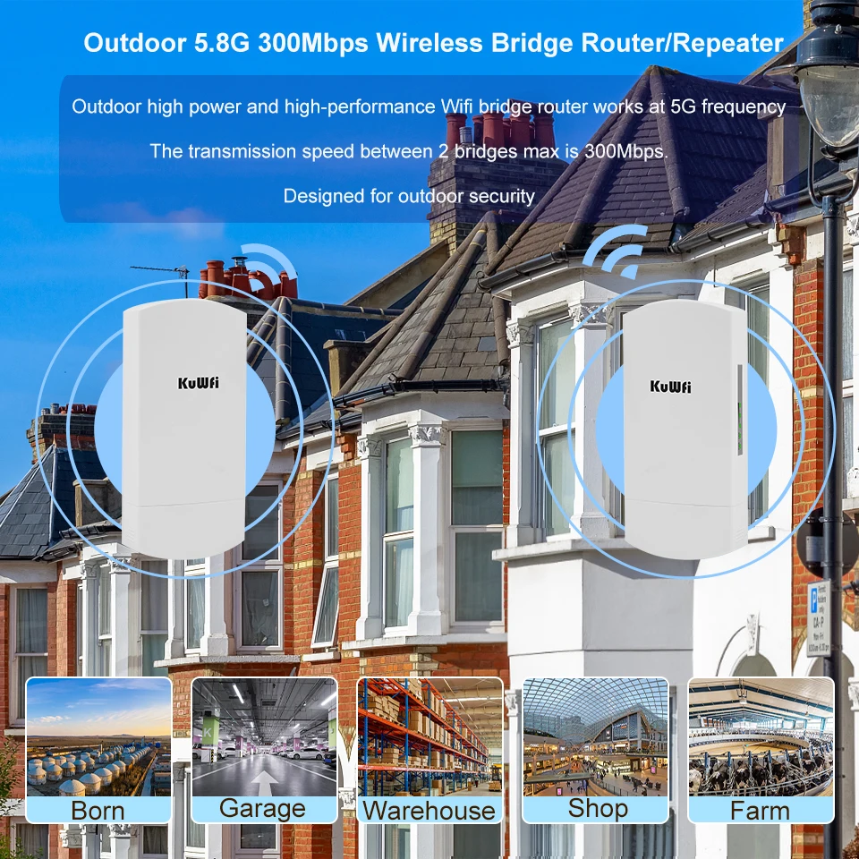 2x5,8G 300Mbps Puente inalámbrico para exteriores