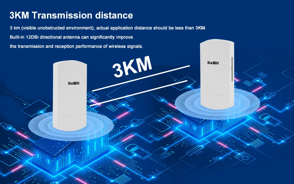 Ø 23dBm de alta potencia RF y diseño de antena de alta ganancia de 12dBi, transmisión de larga distancia de hasta 3 kilómetros